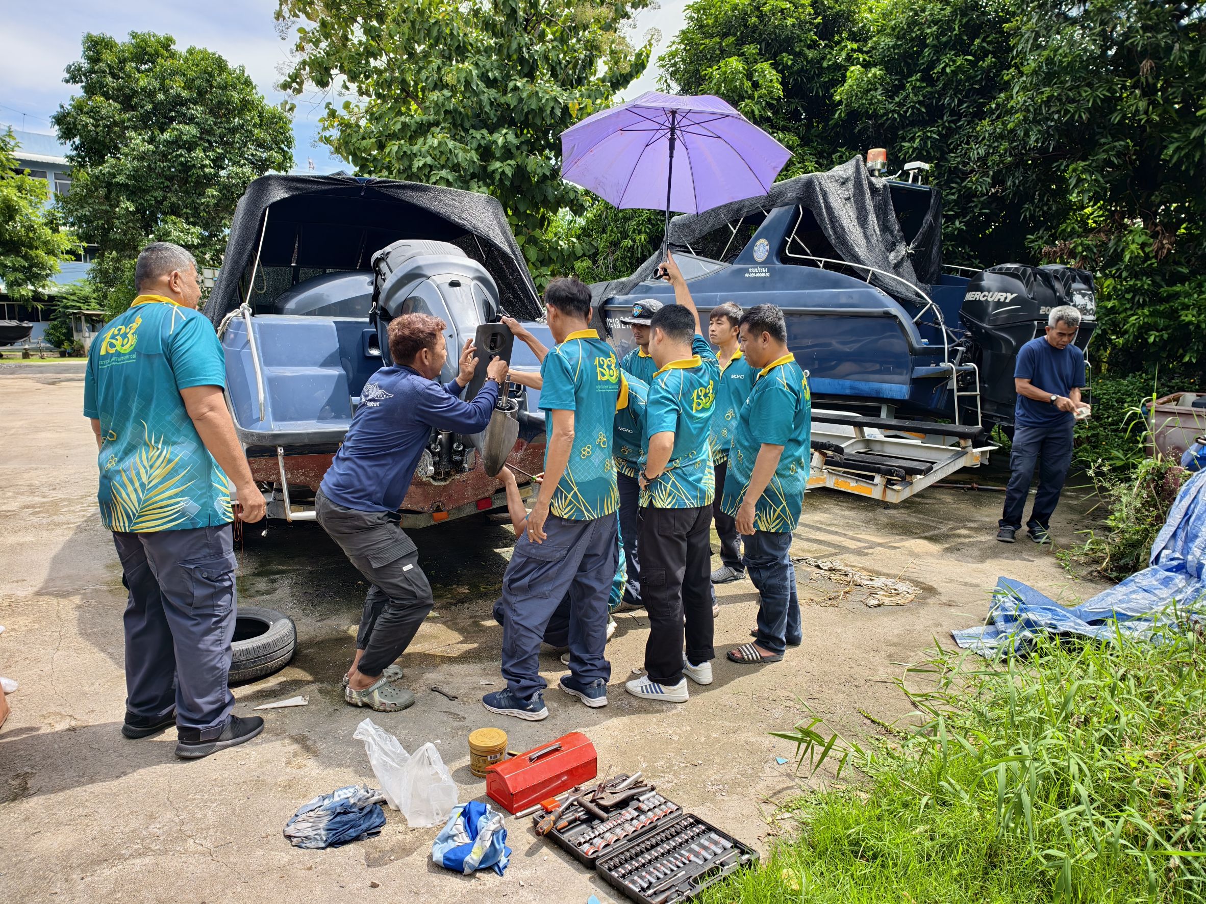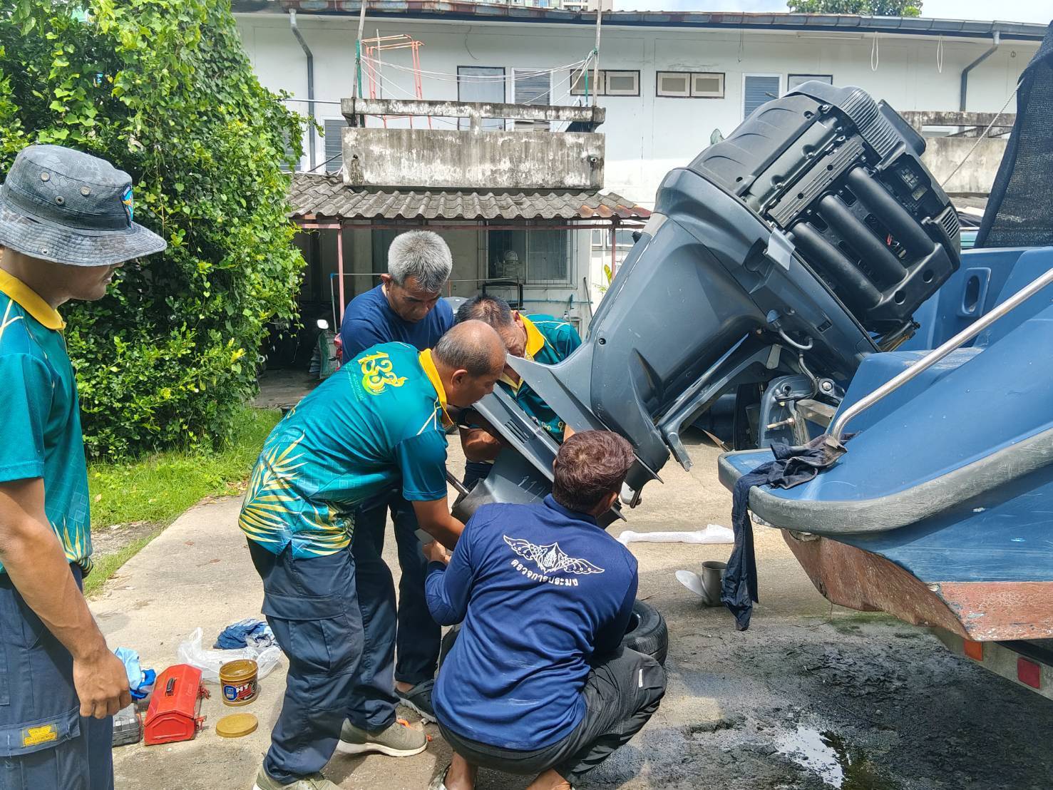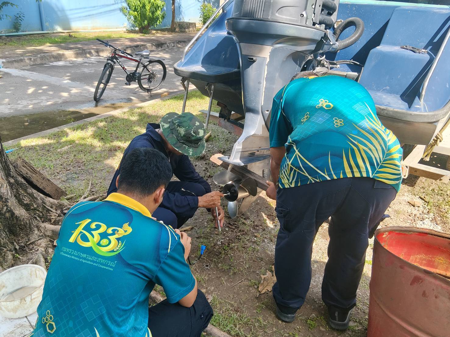 ประกอบชุดเกียร์เรือตรวจประมงทะเลร่วมชุมชนและเรือตรวจประมง111 และทดสอบเครื่องยนต์ เพื่อให้มีความพร้อมในการออกปฏิบัติงาน