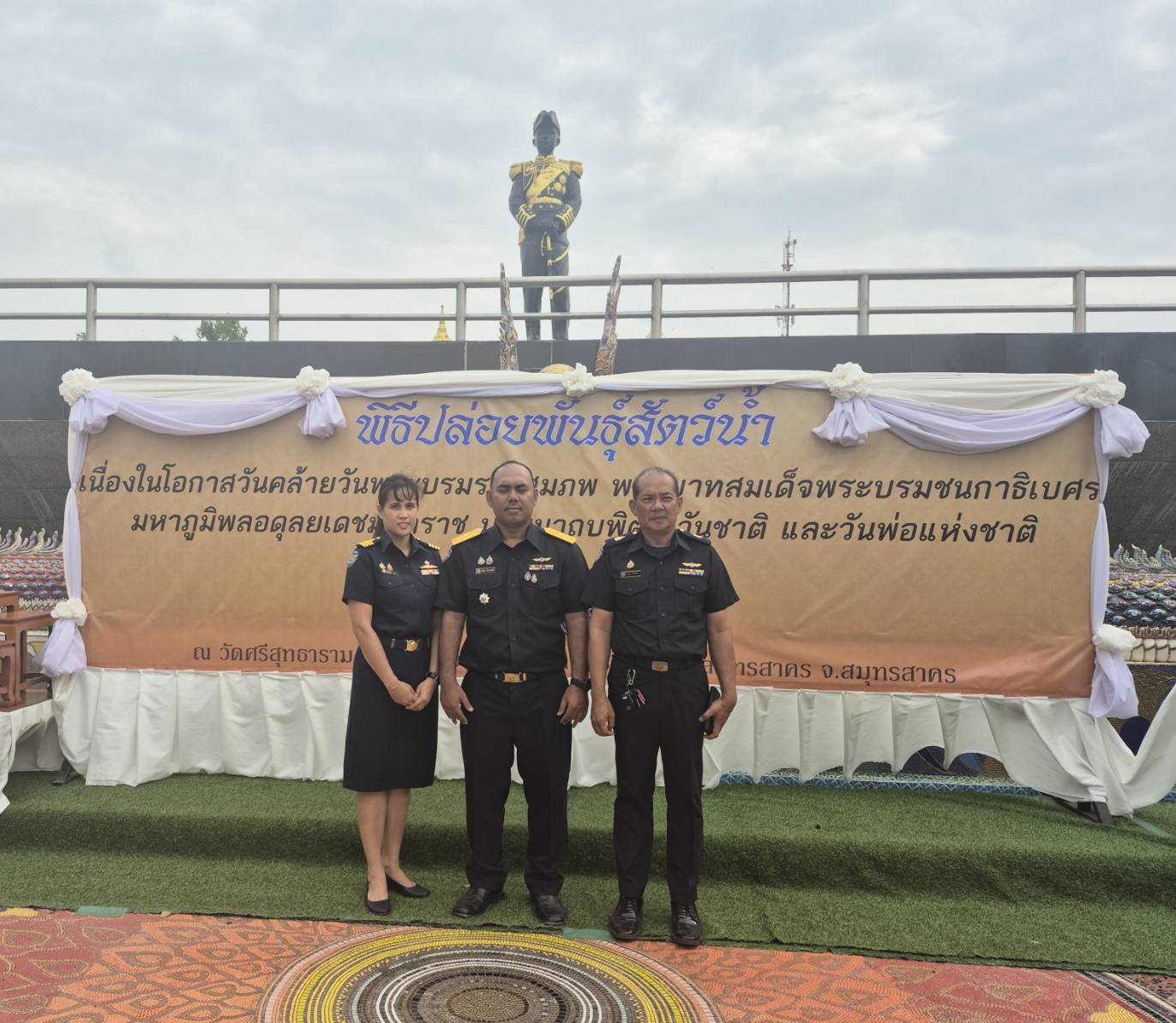 วันที่ 12 ธันวาคม 2568 ศูนย์ป้องกันและปราบปรามประมงทะเลสมุทรปราการ โดย นายศราวุธ วันระยานนท์ ผอ.ศปท.สมุทรปราการ พร้อมเจ้าหน้าที่ศูนย์ฯ เข้าร่วมกิจกรรมปล่อยพันธุ์กุ้งกุลาดำจำนวน1,000,000 ตัว เนื่องโอกาสวันคล้ายวันพระราชสมภพ พระบาทสมเด็จพระบรมชนกาธิเบศร มหาภูมิพลอดุลยเดชมหาราช บรมนาถบพิตร วันชาติ และวันพ่อแห่งชาติ ในวันศุกร์ที่ 12 ธันวาคม 2568 ณ วัดศรีสุทธาราม (วัดกำพร้า) ตำบลบางหญ้าแพรก อำเภอสมุทรสาคร จังหวัดสมุทรสาคร โดยมีนายอำนาจ เจริญศรี ผู้ว่าราชการจังหวัดสมุทรสาคร เป็นประธานเปิดพิธี