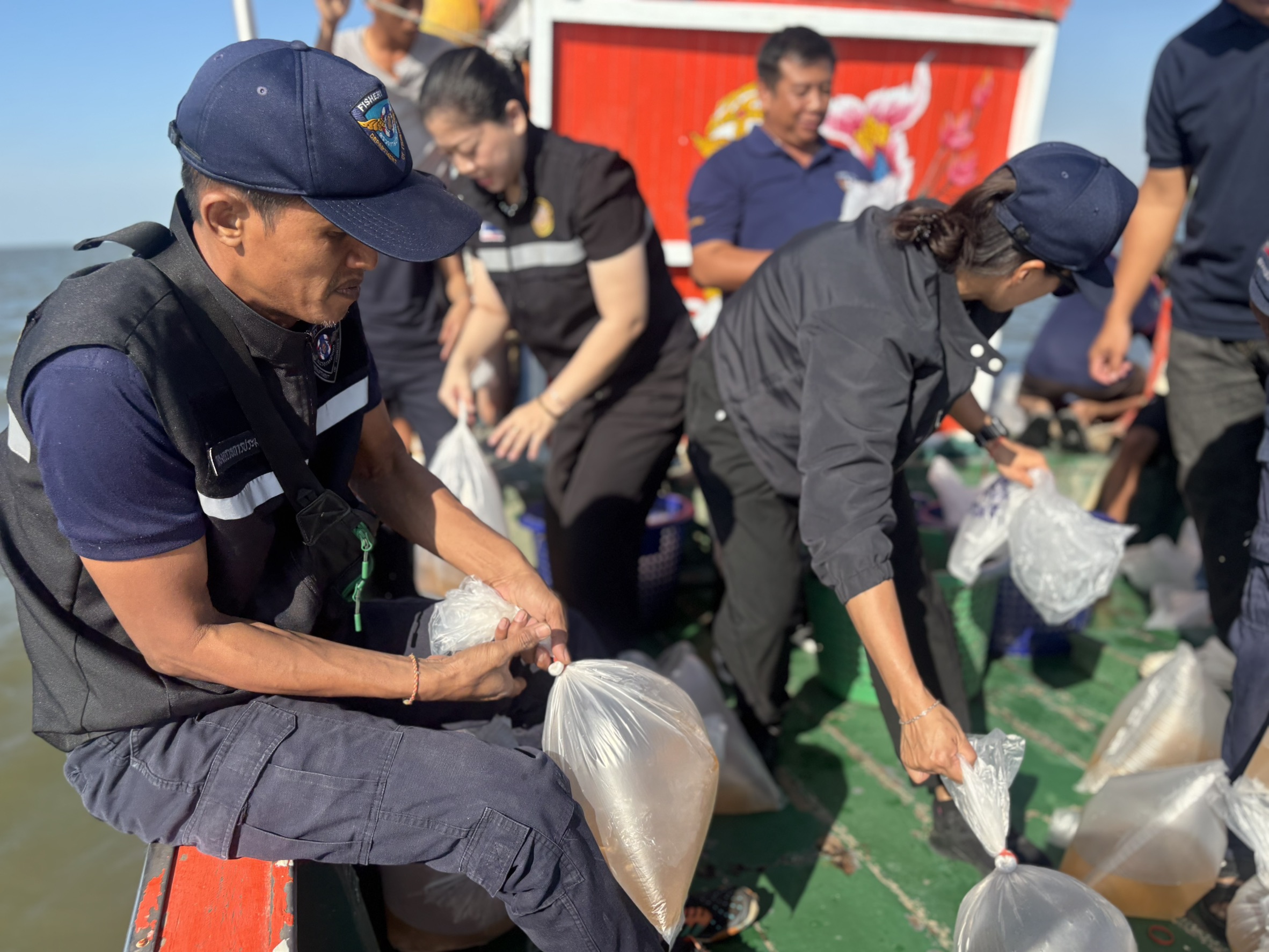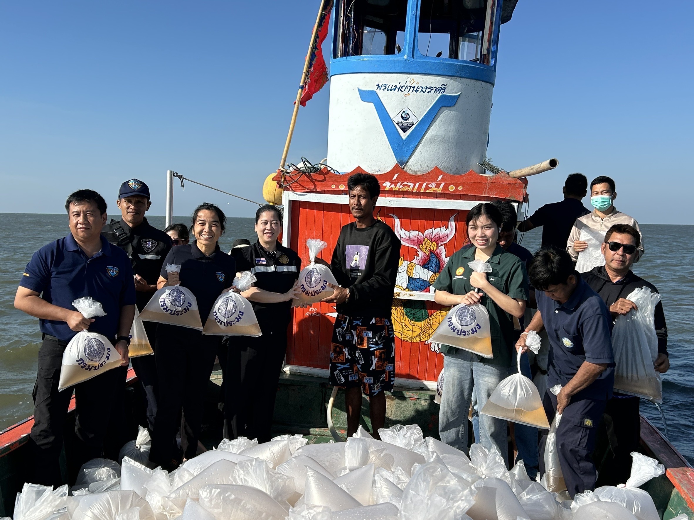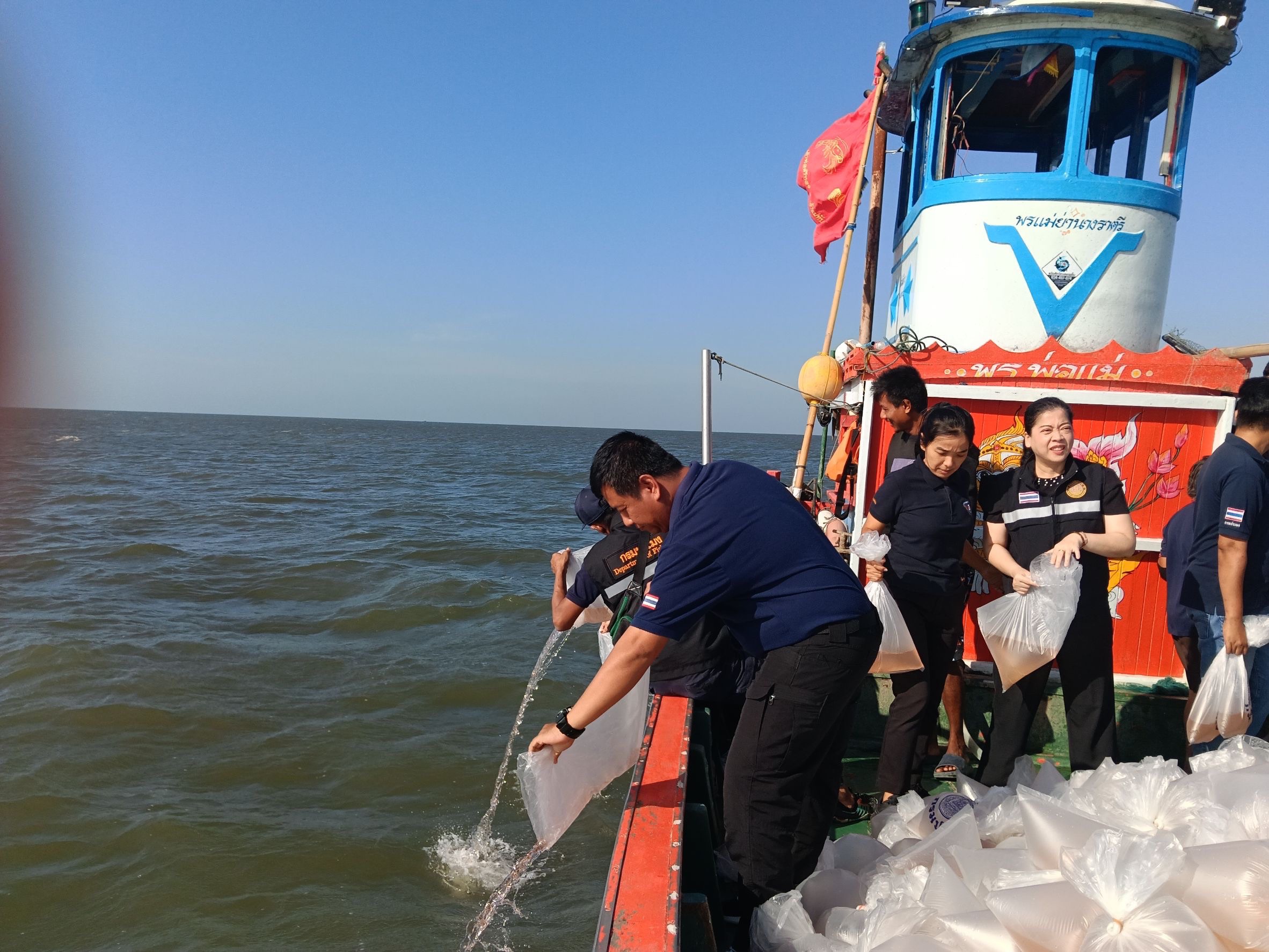 ร่วมกับชุมชนประมงท้องถิ่นบ้านสีล้ง จัดกิจกรรมปล่อยสัตว์น้ำ (กุ้งแชบ๊วย) จำนวน 2,000,000 ตัว