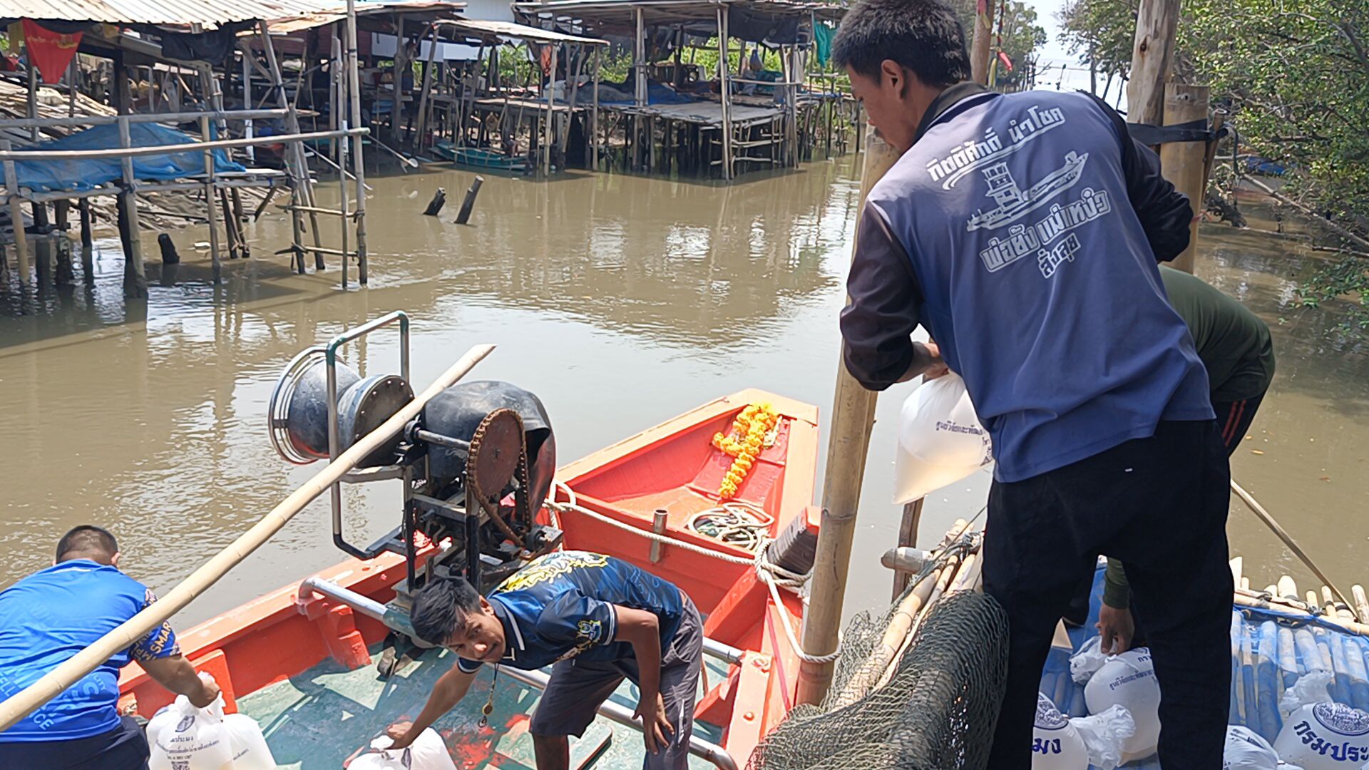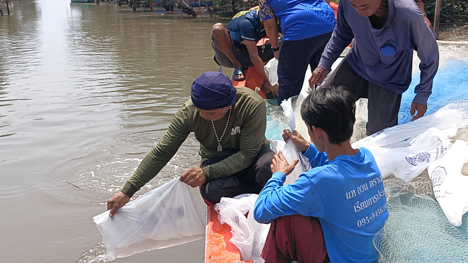 ร่วมกับชุมชนประมงท้องถิ่นบ้านสีล้ง จัดกิจกรรมปล่อยพันธุ์สัตว์น้ำ (กุ้งแชบ๊วย) จำนวน 500,000 ตัว