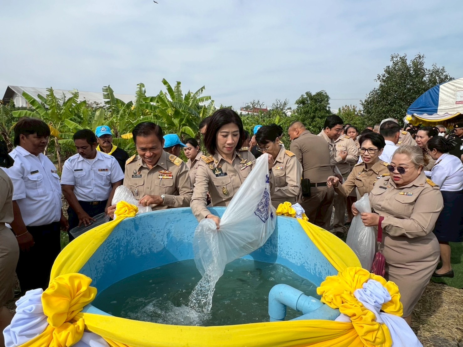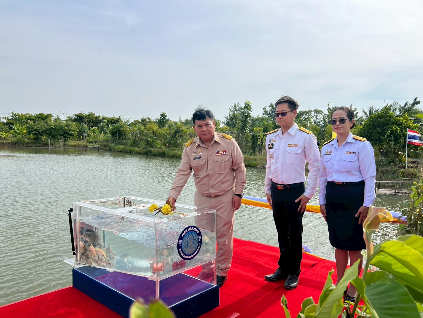 วันอังคารที่ 25 พฤศจิกายน พ.ศ. 2568 นางสาวจิระภา โพธิ์ศรี ผู้อำนวยการศูนย์วิจัยและพัฒนาการเพาะเลี้ยงสัตว์น้ำจืดอ่างทอง เจ้าหน้าที่ศูนย์ฯ อ่างทอง พร้อมด้วยนายวีร์ กี่จนา ประมงจังหวัดอ่างทอง เจ้าหน้าที่สำนักงานประมงจังหวัดอ่างทอง จัดกิจกรรมปล่อยพันธุ์ปลาพระราชทานในการบำเพ็ญพระราชกุศลวันสมเด็จพระมหาธีรราชเจ้า และพระราชพิธีทรงบำเพ็ญพระราชกุศลอภิลักขิตสมัย วันคล้ายวันสวรรคต พระบาทสมเด็จพระมงกฎเกล้าเจ้าอยู่หัว ครบ 100 ปี พื้นที่แปลงโคก หนอง นา พันโทกฤตภัค กู้สุจริต หมู่ที่ 5 ตำบลห้วยคันแหลน อำเภอวิเศษชัยชาญ จังหวัดอ่างทอง ปล่อยพันธุ์ปลาแรด ปลาตะเพียนขาว ปลาตะเพียนทอง ปลานิล และปลานิลแดง จำนวนชนิดละ 199 ตัว รวมจำนวนทั้งสิ้น 796 ตัว โดยมีนายนที มนตริวัต ผู้ว่าราชการจังหวัดอ่างทอง เป็นประธานในพิธี หัวหน้าส่วนราชการสังกัดกระทรวงเกษตรและสหกรณ์ หัวหน้าส่วนราชการระดับจังหวัด จิตอาสา เข้าร่วมพิธี