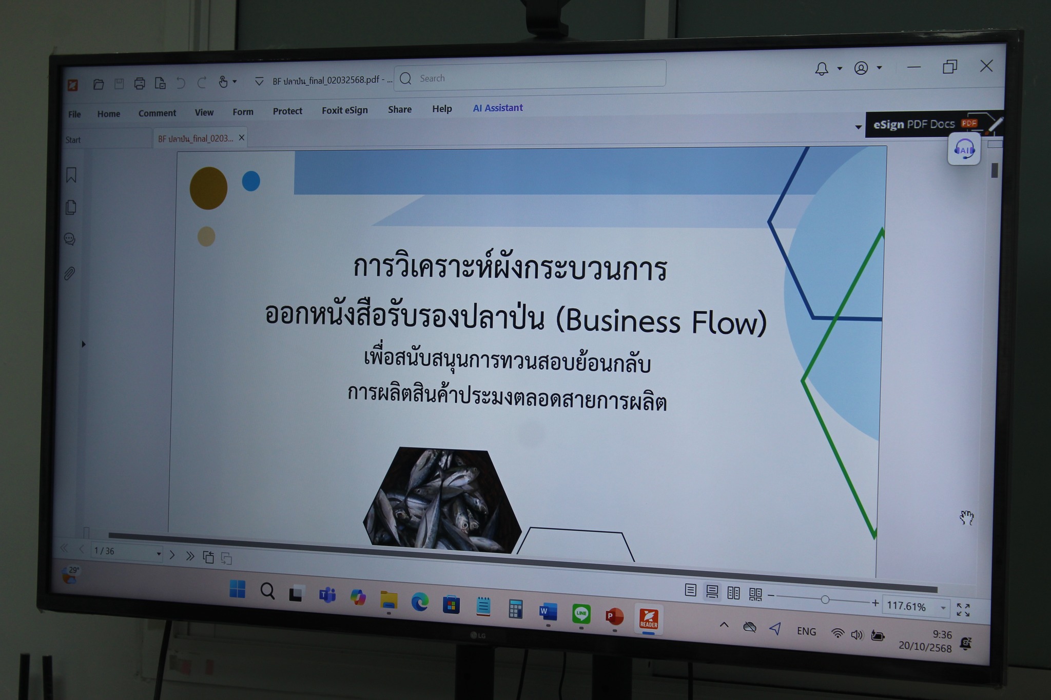 วันจันทร์ที่ 20 ตุลาคม 2568 ณ ห้องประชุมตะลุมพุก กองตรวจสอบเรือประมง สินค้าสัตว์น้ำ และปัจจัยการผลิต นายซุลกีฟลี ละติฟีปุตรา ผู้อำนวยการกองตรวจสอบเรือประมง สินค้าสัตว์น้ำ และปัจจัยการผลิต กรป. กรมประมง เป็นประธานการประชุม ประชุมหารือเกี่ยวกับการพัฒนาระบบการออกหนังสือรับรองปลาป่นและผลิตภัณฑ์ของปลาป่น เพื่อให้ระบบสามารถรองรับการใช้งานกับสถานการณ์ที่มีการเปลี่ยนแปลงได้อย่างมีประสิทธิภาพมากยิ่งขึ้น โดยมีนายจิติวัฒน์ เหล็งบำรุง หัวหน้ากลุ่มวิเคราะห์และพัฒนาระบบการตรวจสอบเรือประมง สินค้าสัตว์น้ำ และปัจจัยการผลิต และเจ้าหน้าที่กลุ่มวิเคราะห์และพัฒนาระบบการตรวจสอบเรือประมง สินค้าสัตว์น้ำ และปัจจัยการผลิตเข้าร่วมประชุมด้วย..
