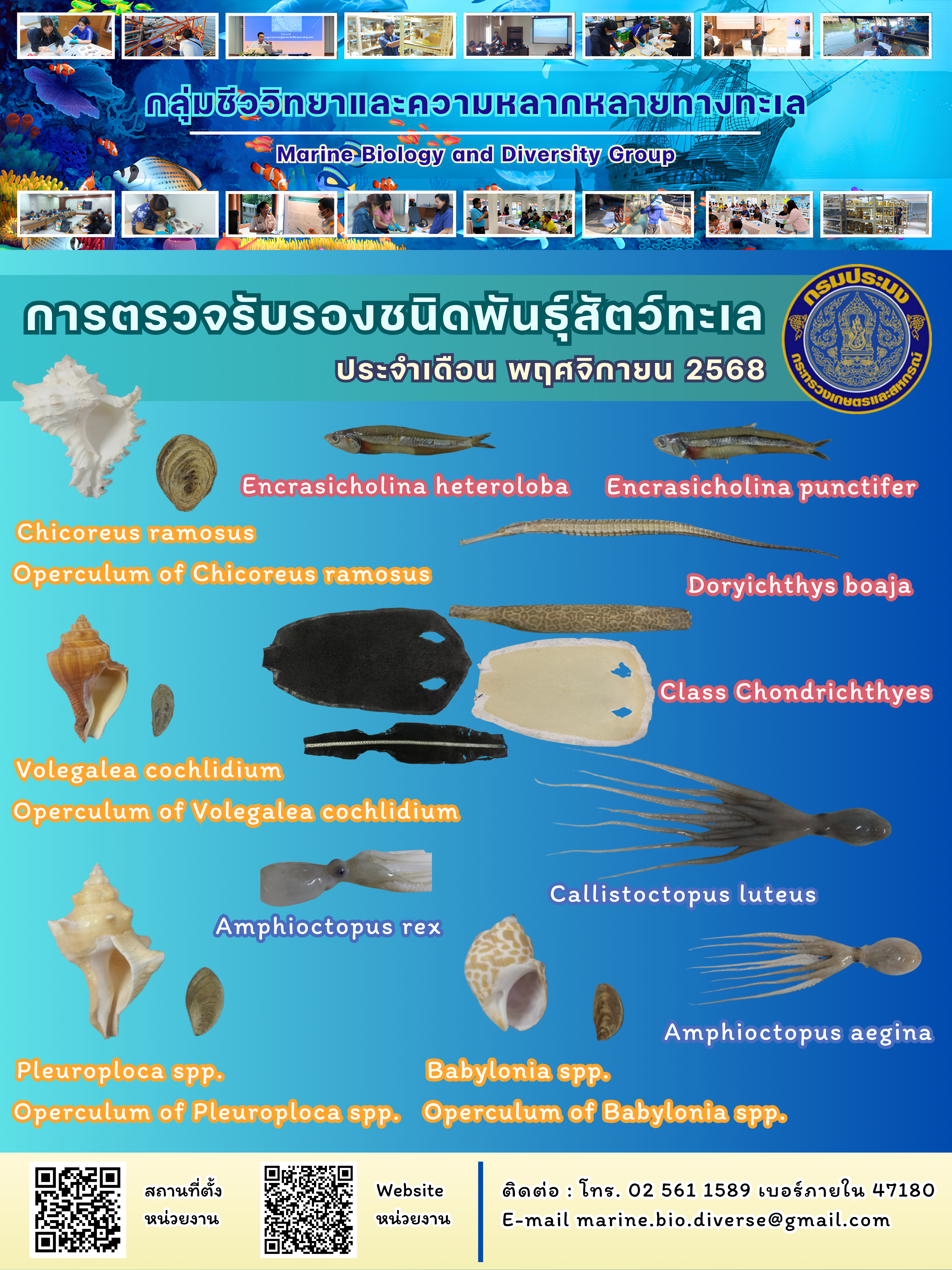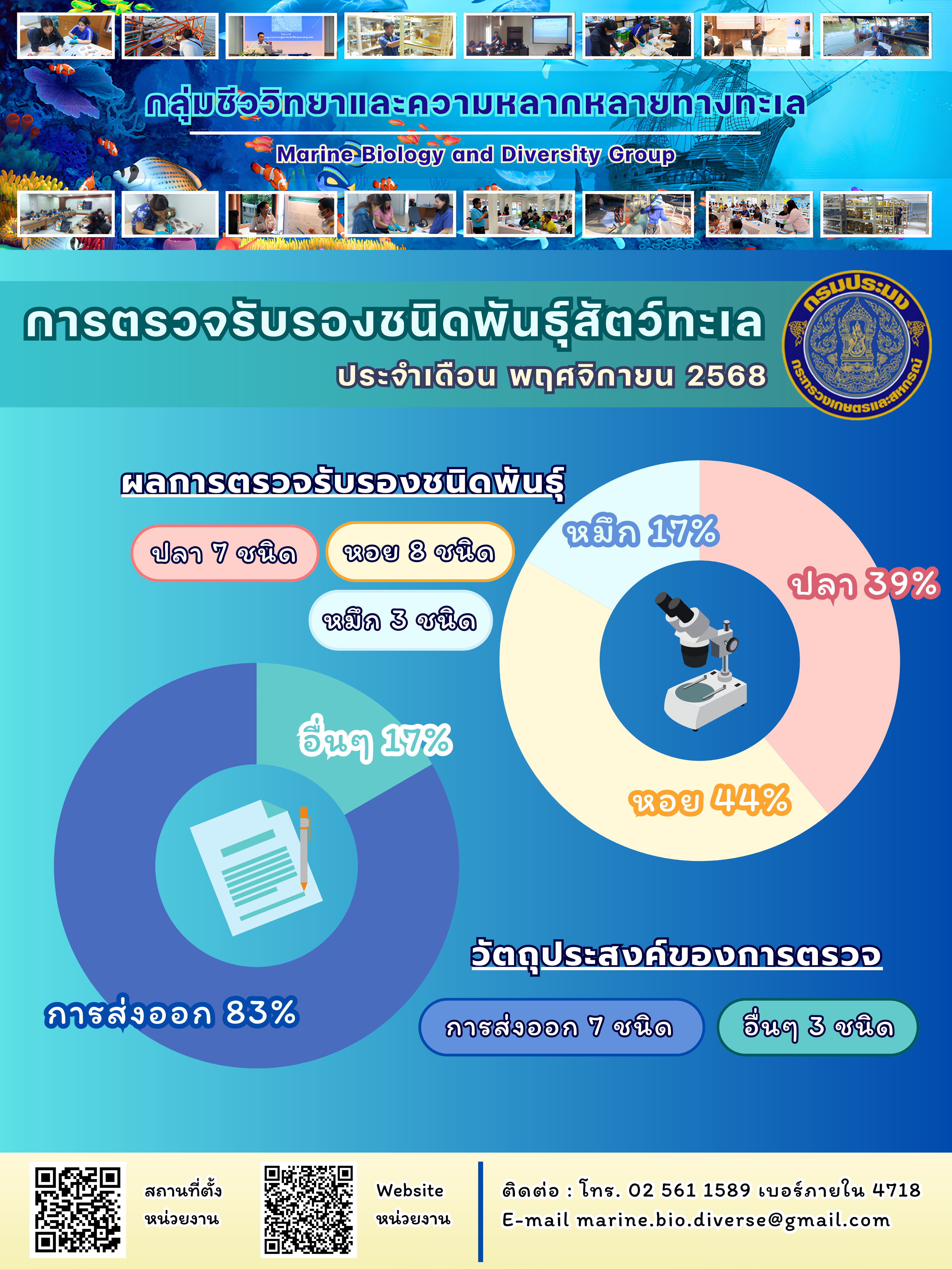 NEW สรุปข้อมูลตรวจรับรองชนิดพันธุ์สัตว์ทะเล ประจำปี 2568 เดือนพฤศจิกายน..คลิก