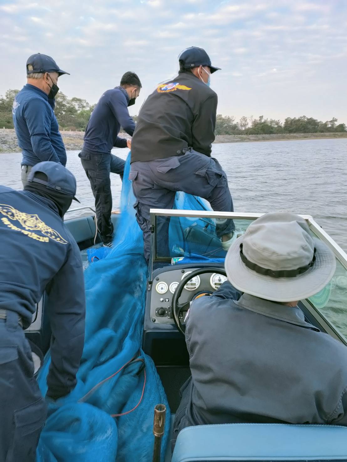 ปฏิบัติงานควบคุมการทำประมงในพื้นที่อ่างเก็บน้ำเขื่อนลำปาว จังหวัดกาฬสินธุ์