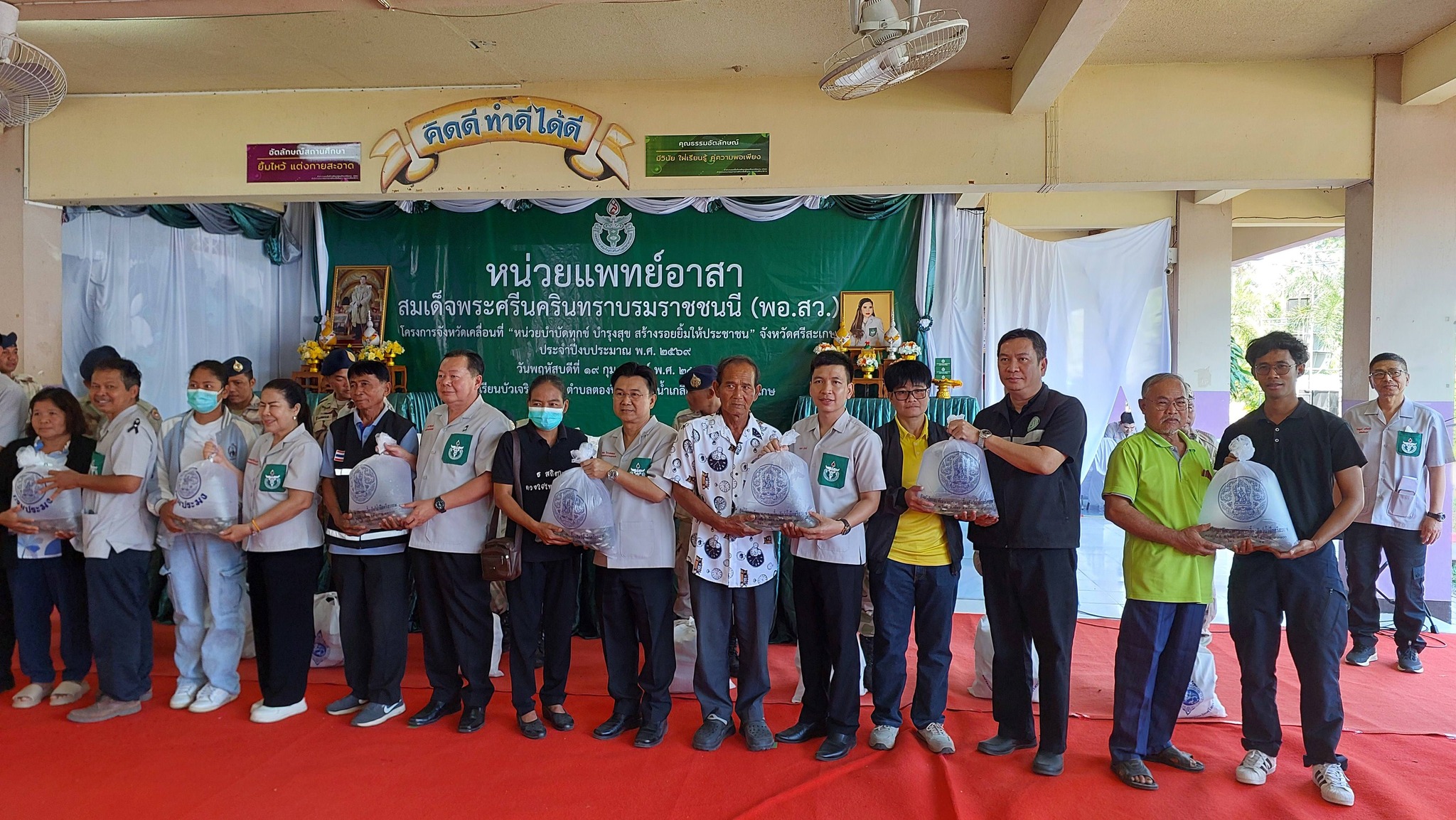 วันที่ 19 กุมภาพันธ์ 2569 นางสาวกิ่งเทียน เรืองคนนอก นักวิชาการประมงปฏิบัติการรักษาการแทน ผู้อำนวยการศูนย์วิจัยและพัฒนาการเพาะเลี้ยงสัตว์น้ำจืดศรีสะเกษ มอบหมายให้ นายนทวัฒน์ ลุนหล้า นักวิชาการประมง และเจ้าหน้าที่ของศูนย์ฯ ร่วมกับสำนักงานประมงจังหวัดศรีสะเกษ ออกหน่วยแพทย์เคลื่อนที่ สมเด็จพระศรีนครินทราบรมราชชนนี หรือ พอ.สว. โดยมี นายธาตรี สิริรุ่งวนิช รองผู้ว่าราชการจังหวัดศรีสะเกษ เป็นประธาน ณ โรงเรียนบัวเจริญวิทยา ตำบลตองปิด อำเภอน้ำเกลี้ยง จังหวัดศรีสะเกษ