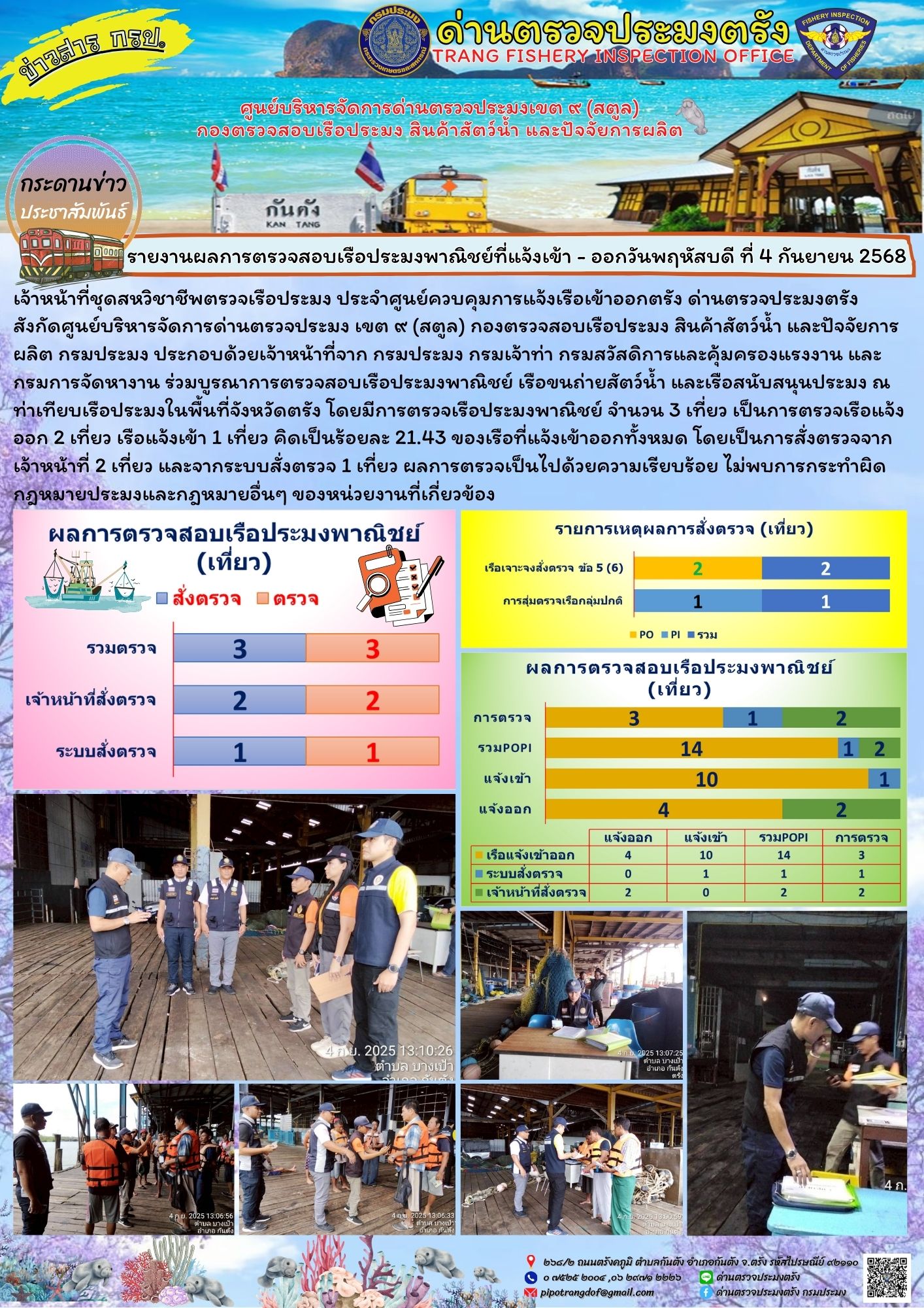 #ผลการแจ้งเข้าออกและการตรวจสอบเรือประมงประจำวันที่ 4 กันยายน 2568..คลิก