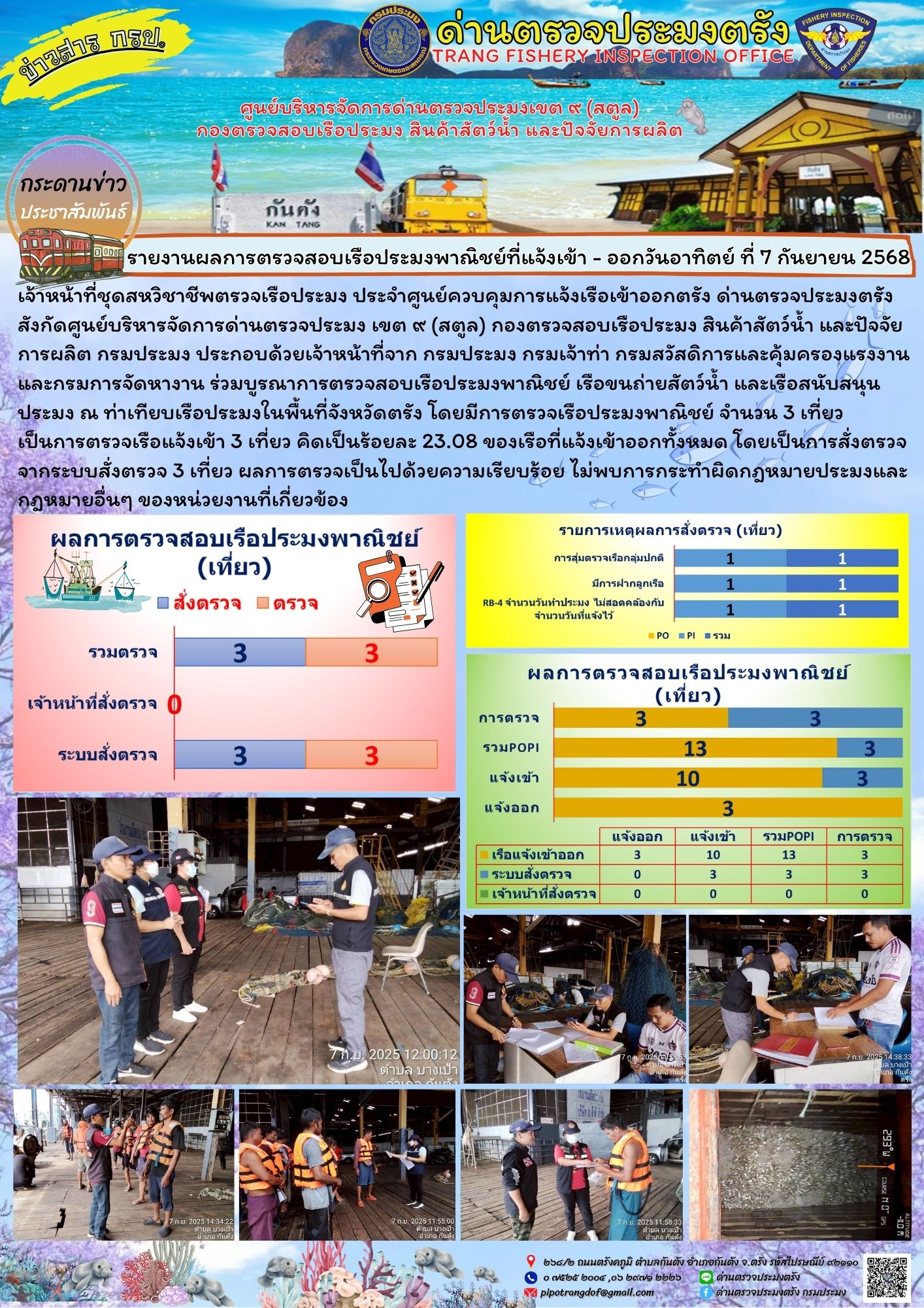 #ผลการแจ้งเข้าออกและการตรวจสอบเรือประมงประจำวันที่ 7 กันยายน 2568