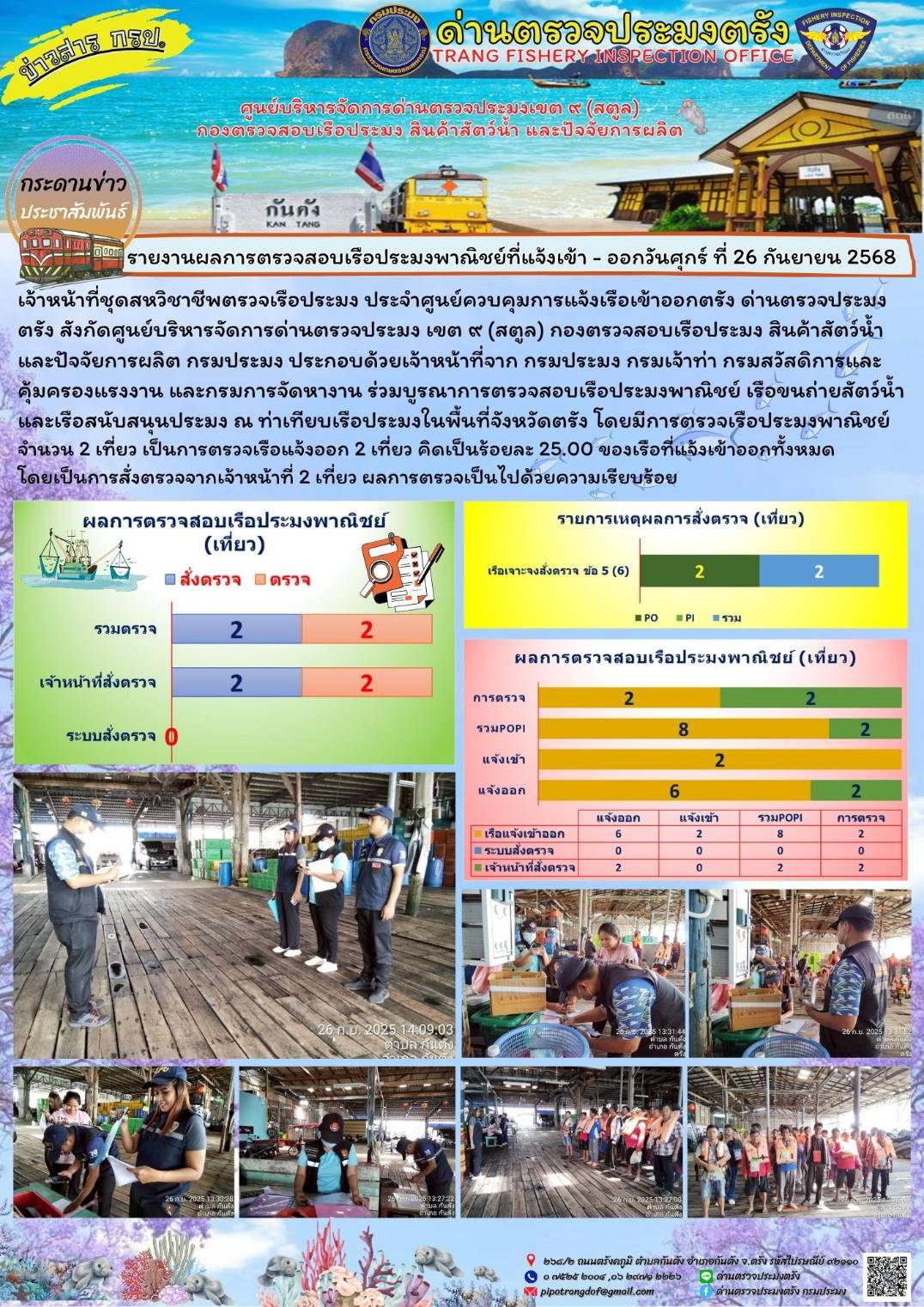 #ผลการแจ้งเข้าออกและการตรวจสอบเรือประมงประจำวันที่ 26 กันยายน 2568..คลิก