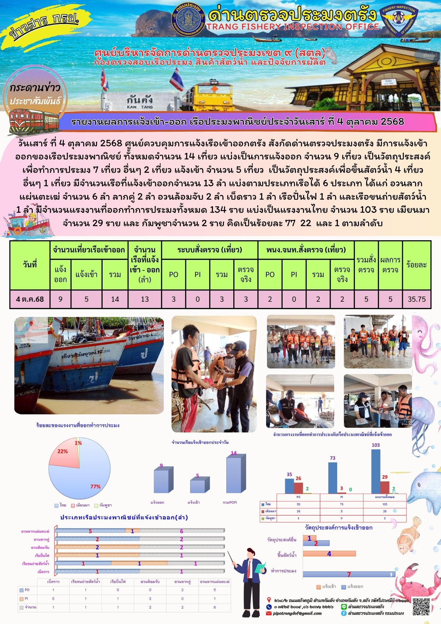 #ผลการแจ้งเข้าออกและการตรวจสอบเรือประมงประจำวันที่ 4 ตุลาคม 2568