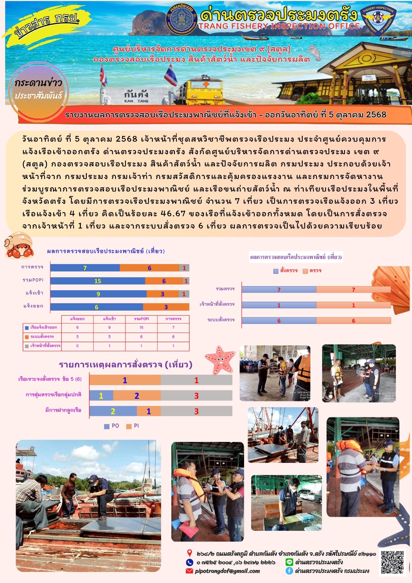 #ผลการแจ้งเข้าออกและการตรวจสอบเรือประมงประจำวันที่ 5 ตุลาคม 2568
