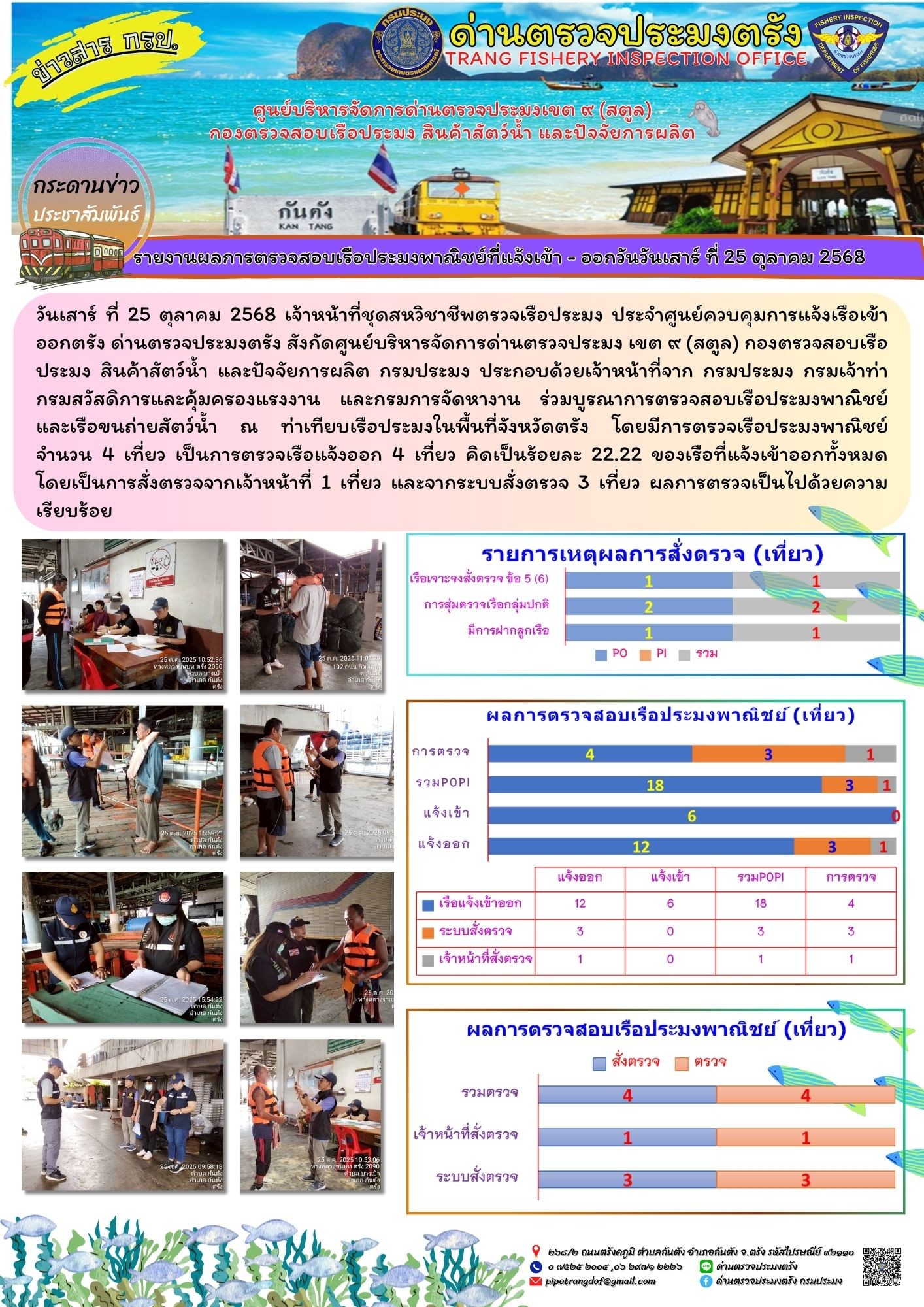 #ผลการแจ้งเข้าออกและการตรวจสอบเรือประมงประจำวันที่ 25 ตุลาคม 2568..คลิก
