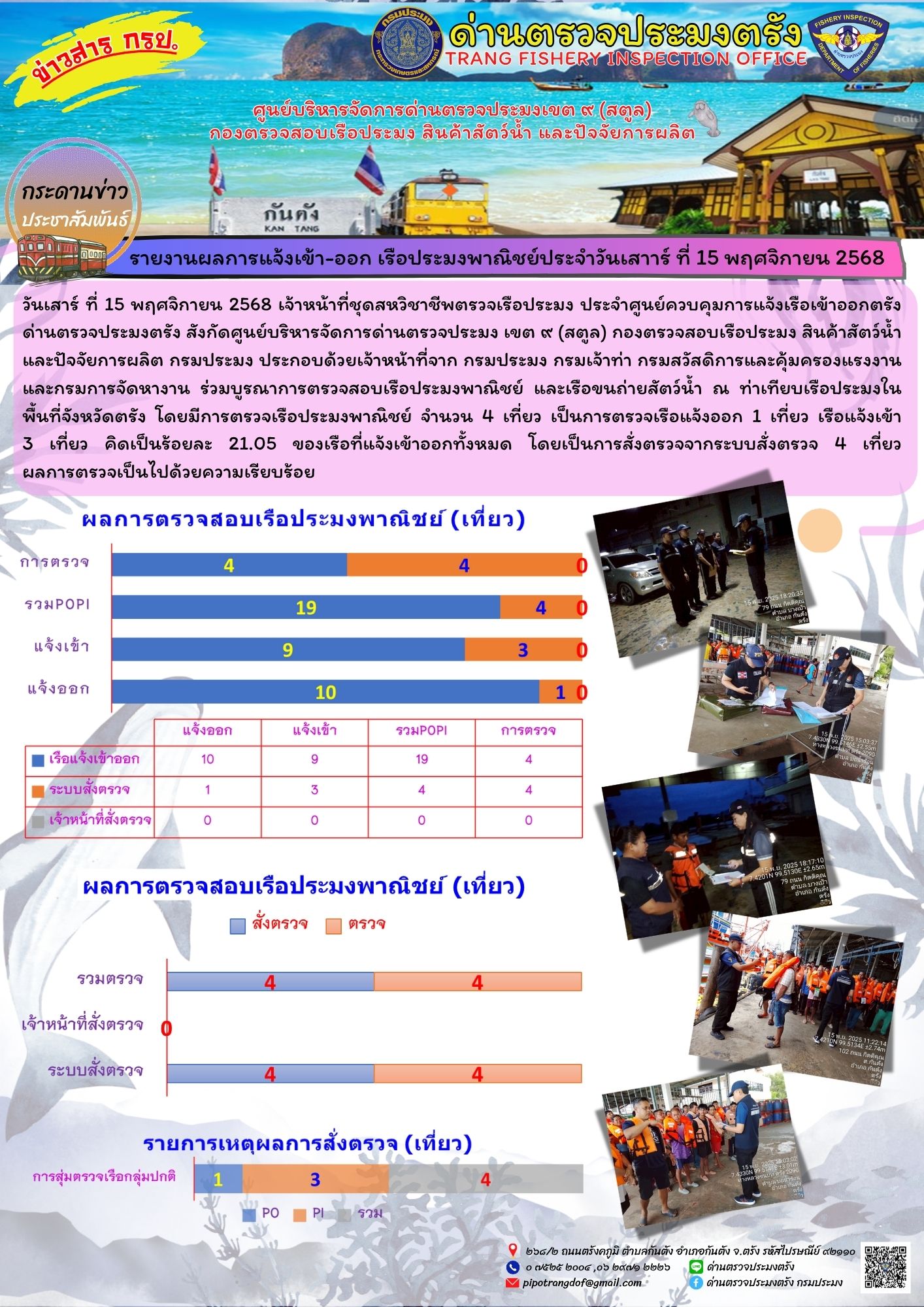 #ผลการแจ้งเข้าออกและการตรวจสอบเรือประมงประจำวันที่ 15 พฤศจิกายน 2568..คลิก