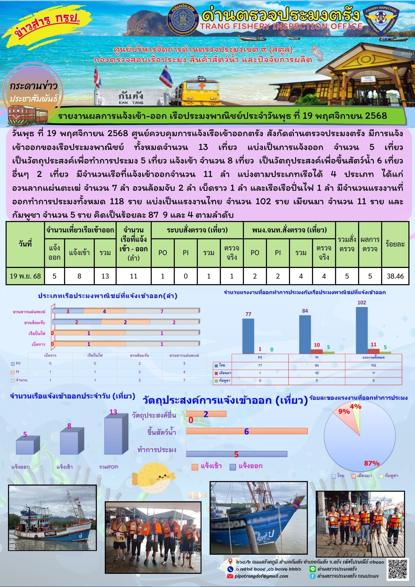 NEW #ผลการแจ้งเข้าออกและการตรวจสอบเรือประมงประจำวันที่ 19 พฤศจิกายน 2568..คลิก