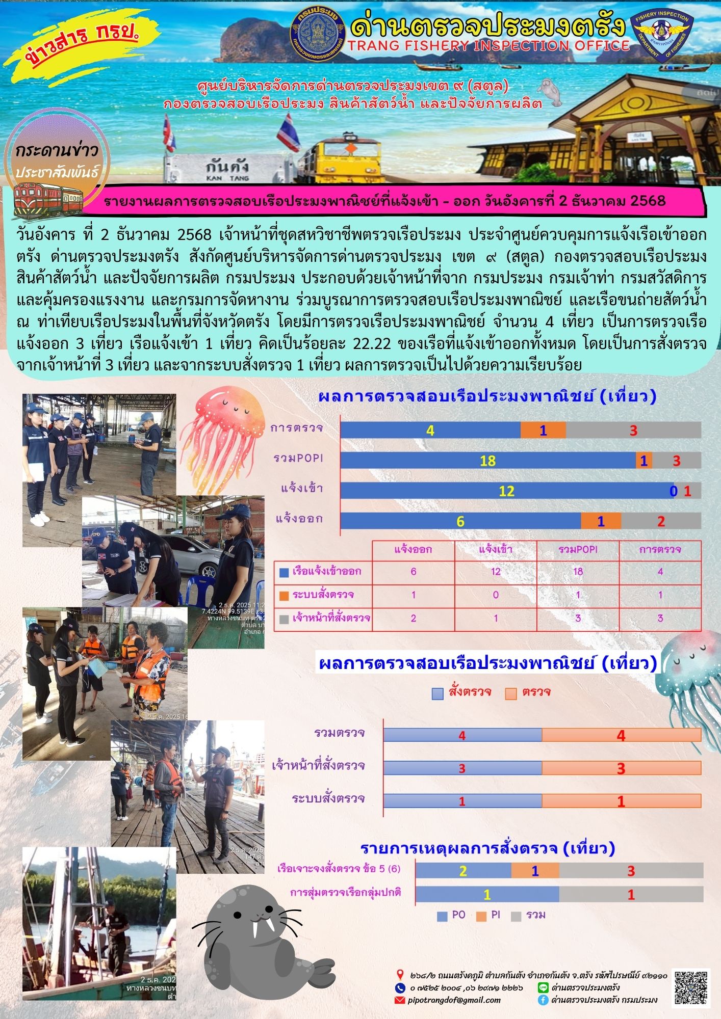 #ผลการแจ้งเข้าออกและการตรวจสอบเรือประมงประจำวันที่ 2 ธันวาคม 2568