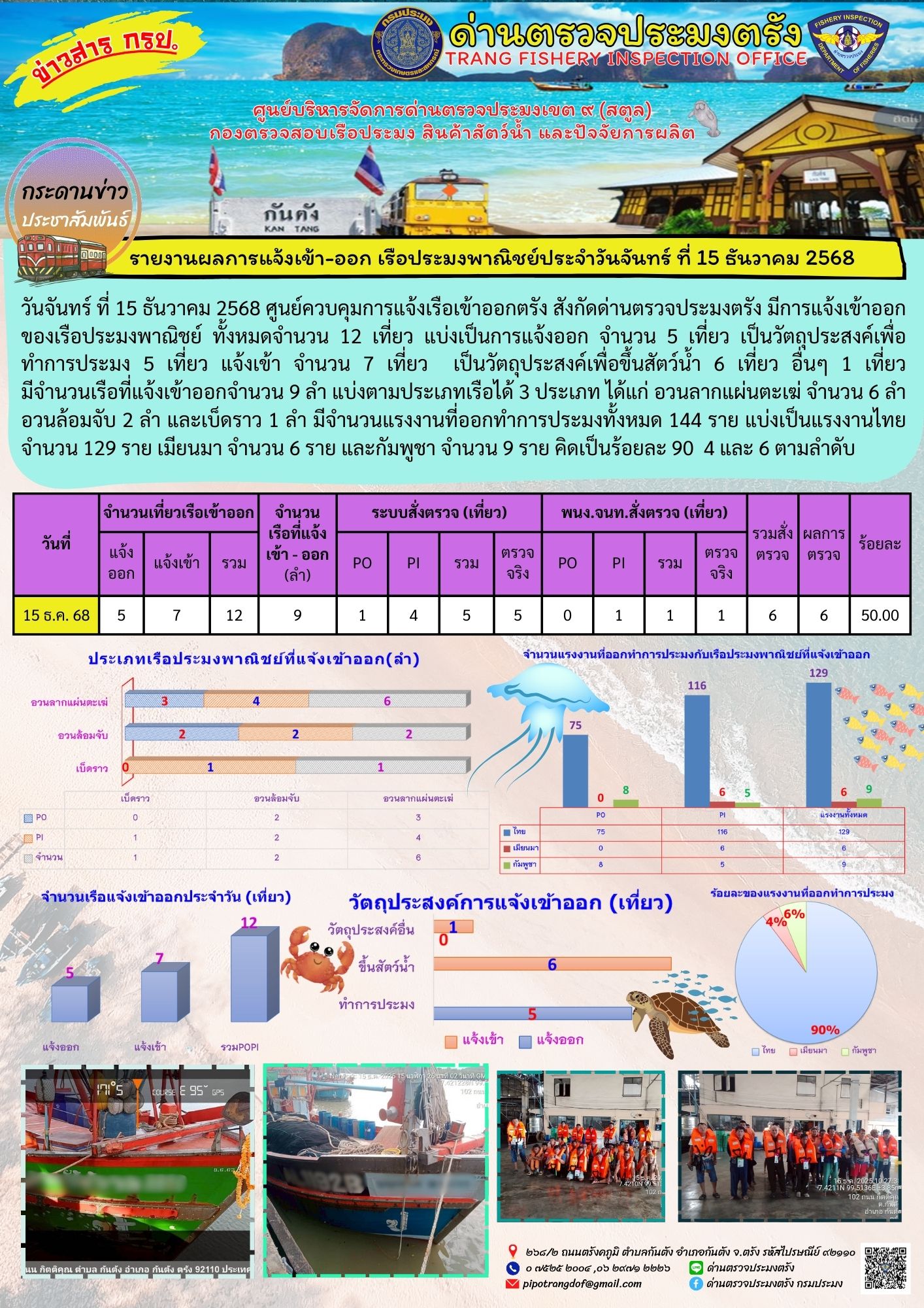 #ผลการแจ้งเข้าออกและการตรวจสอบเรือประมงประจำวันที่ 15 ธันวาคม 2568
