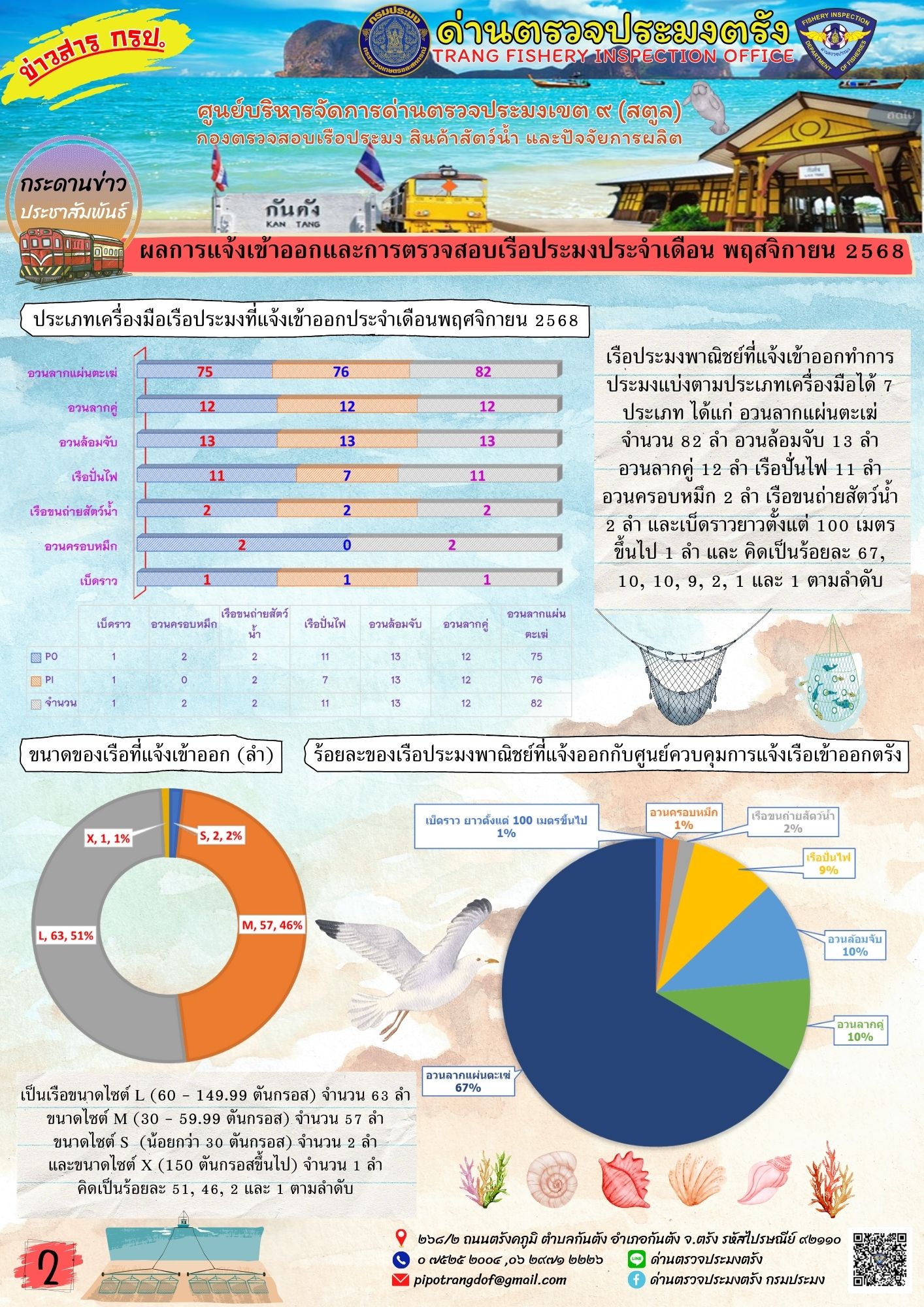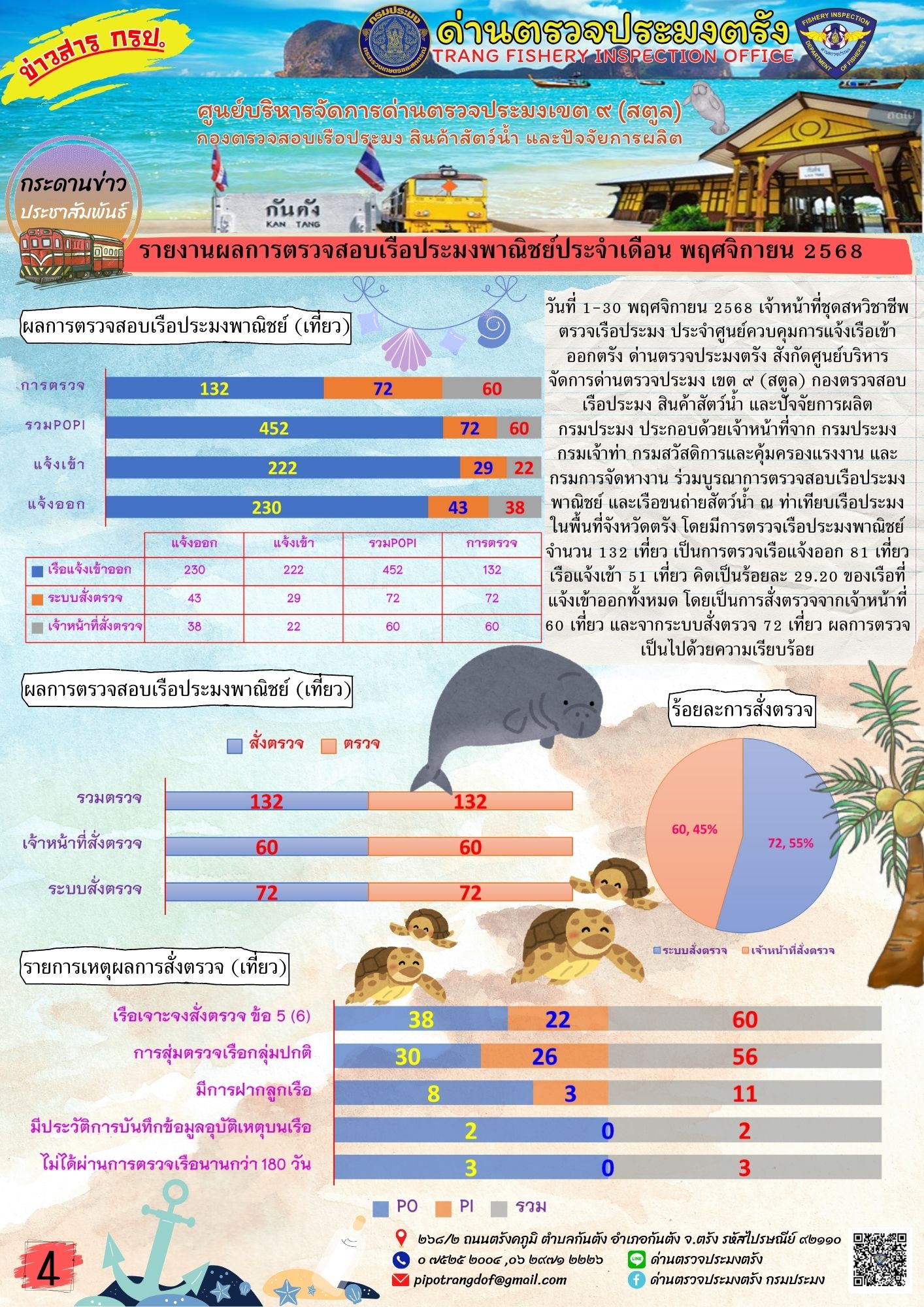 NEW #ผลการแจ้งเข้าออกและการตรวจสอบเรือประมงประจำเดือน พฤศจิกายน 2568..คลิก