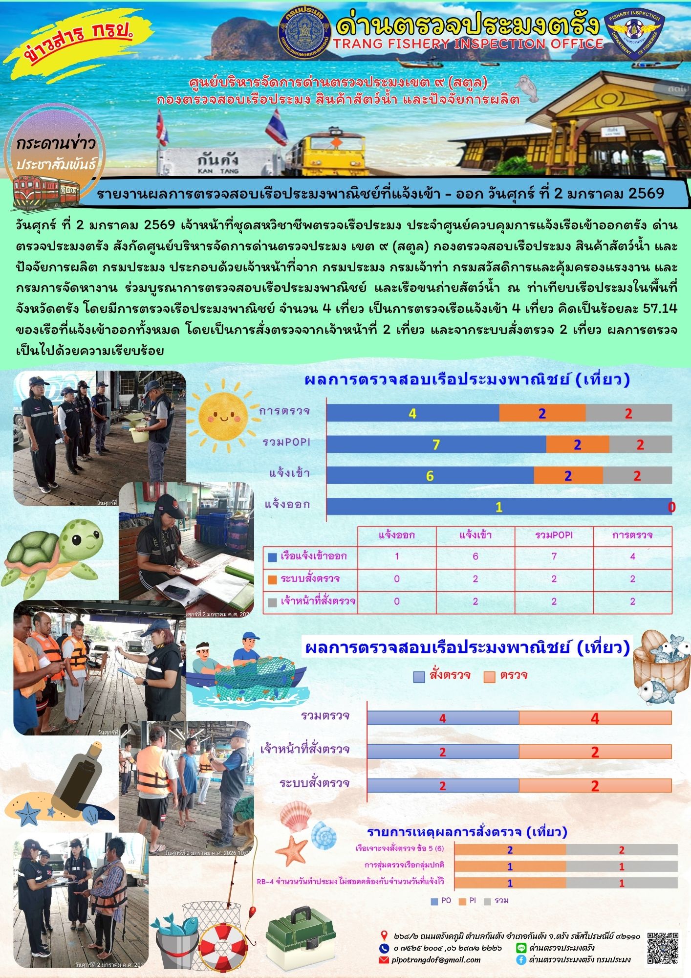 NEW #ผลการแจ้งเข้าออกและการตรวจสอบเรือประมงประจำวันที่ 2 มกราคม 2569..คลิก