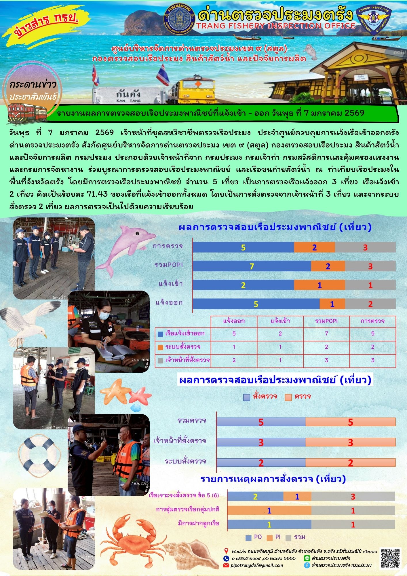 NEW #ผลการแจ้งเข้าออกและการตรวจสอบเรือประมงประจำวันที่ 7 มกราคม 2569..คลิก