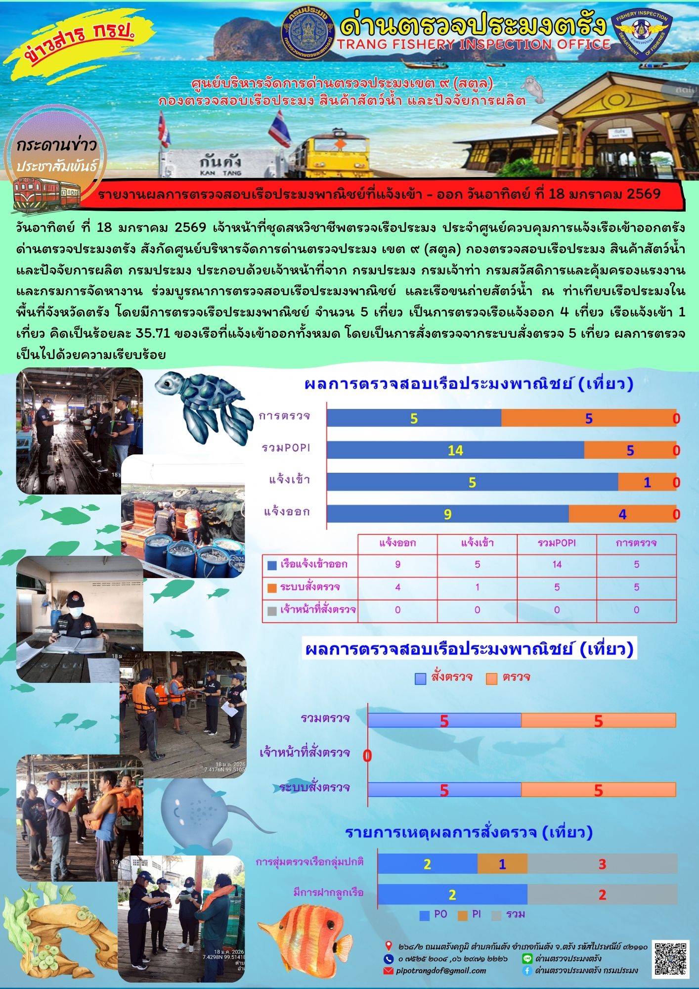 #ผลการแจ้งเข้าออกและการตรวจสอบเรือประมงประจำวันที่ 18 มกราคม 2569