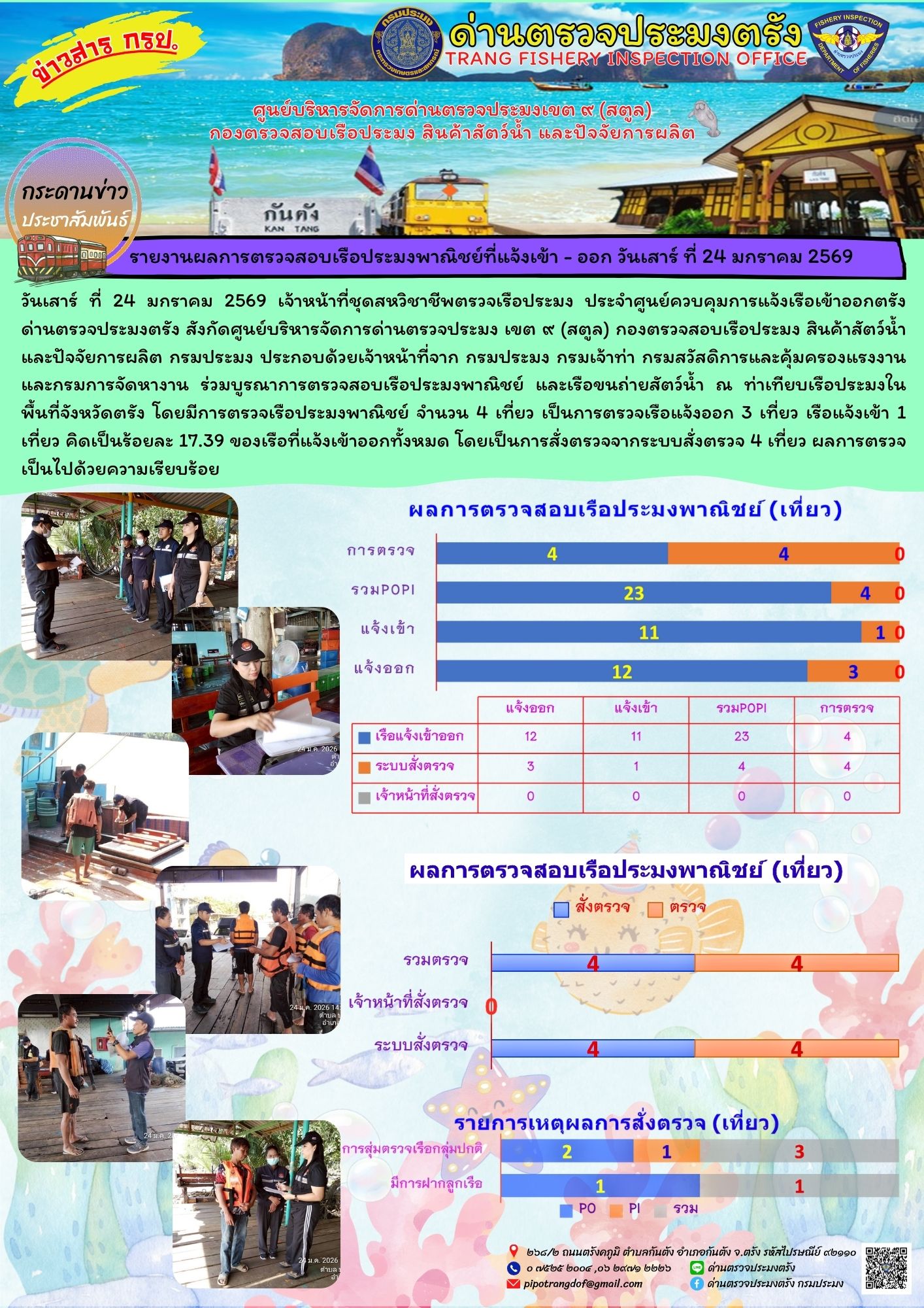 NEW #ผลการแจ้งเข้าออกและการตรวจสอบเรือประมงประจำวันที่ 24 มกราคม 2569..คลิก