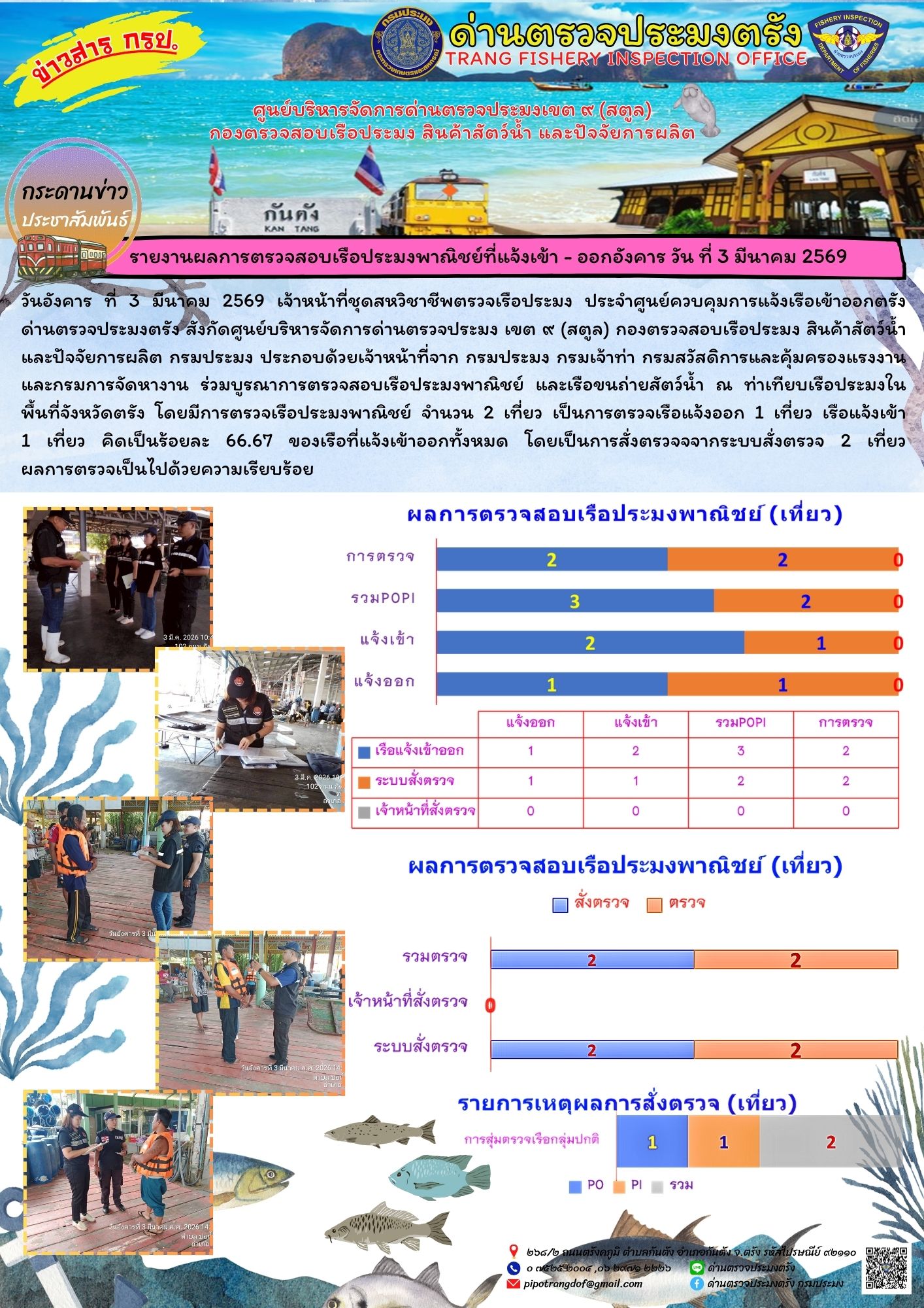 NEW #ผลการแจ้งเข้าออกและการตรวจสอบเรือประมงประจำวันที่ 3 มีนาคม 2569..คลิก