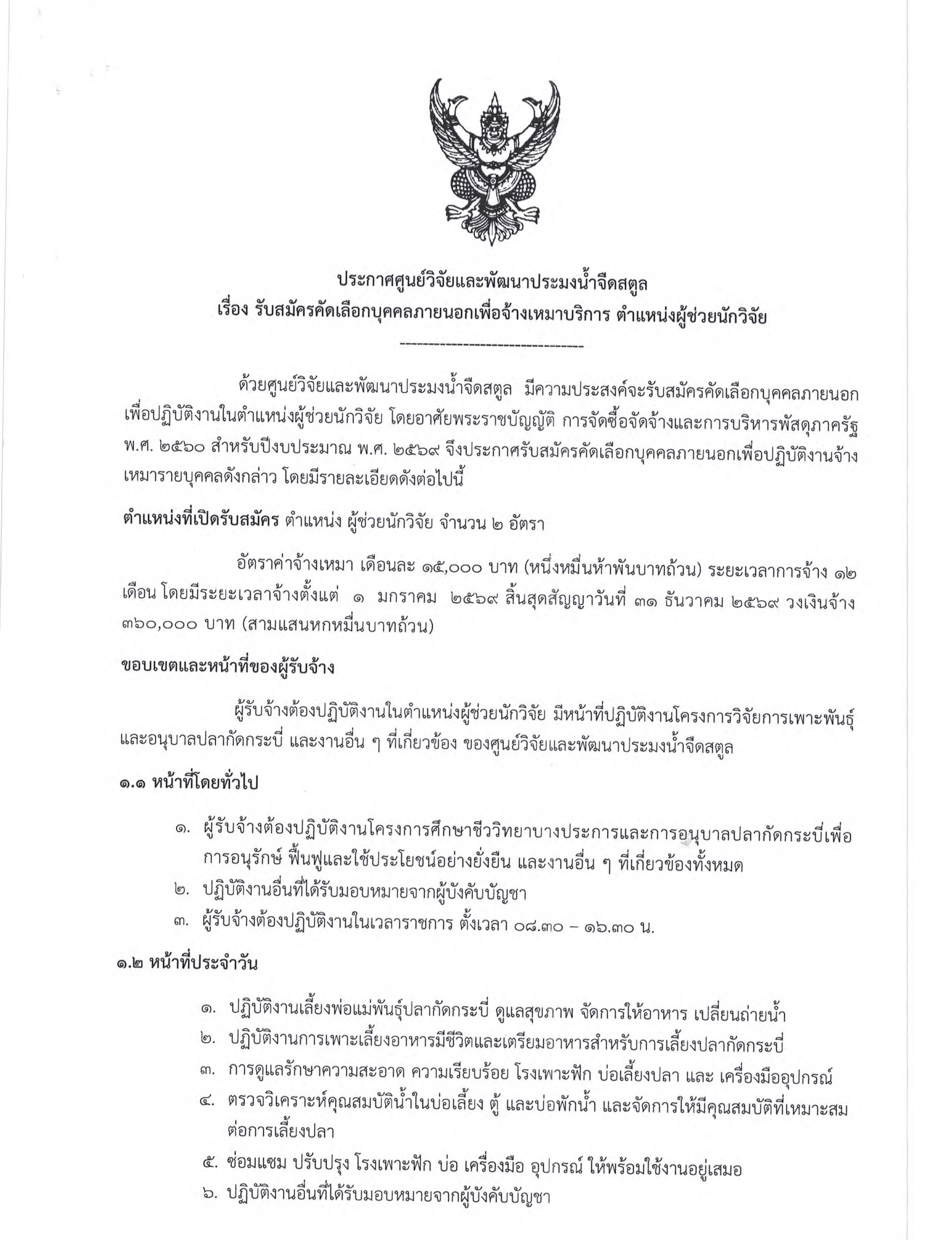 ประกาศรายชื่อผู้ผ่านการสอบคัดเลือกบุคคลภายนอกเพื่อจ้างเหมาบริการ ตำแหน่ง ผู้ช่วยนักวิจัย อ่านรายละเอียด