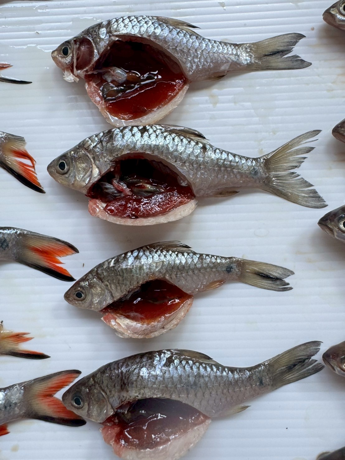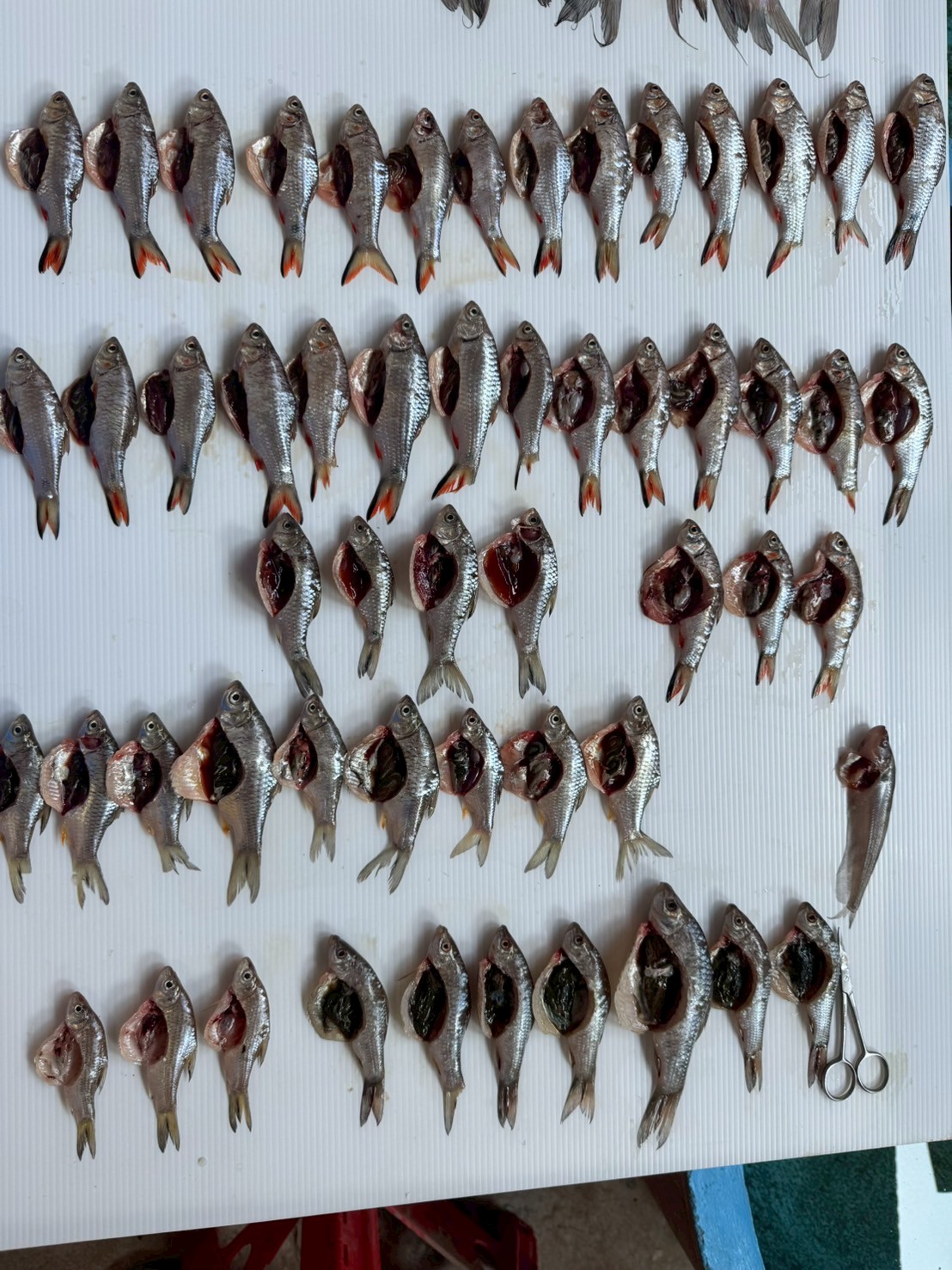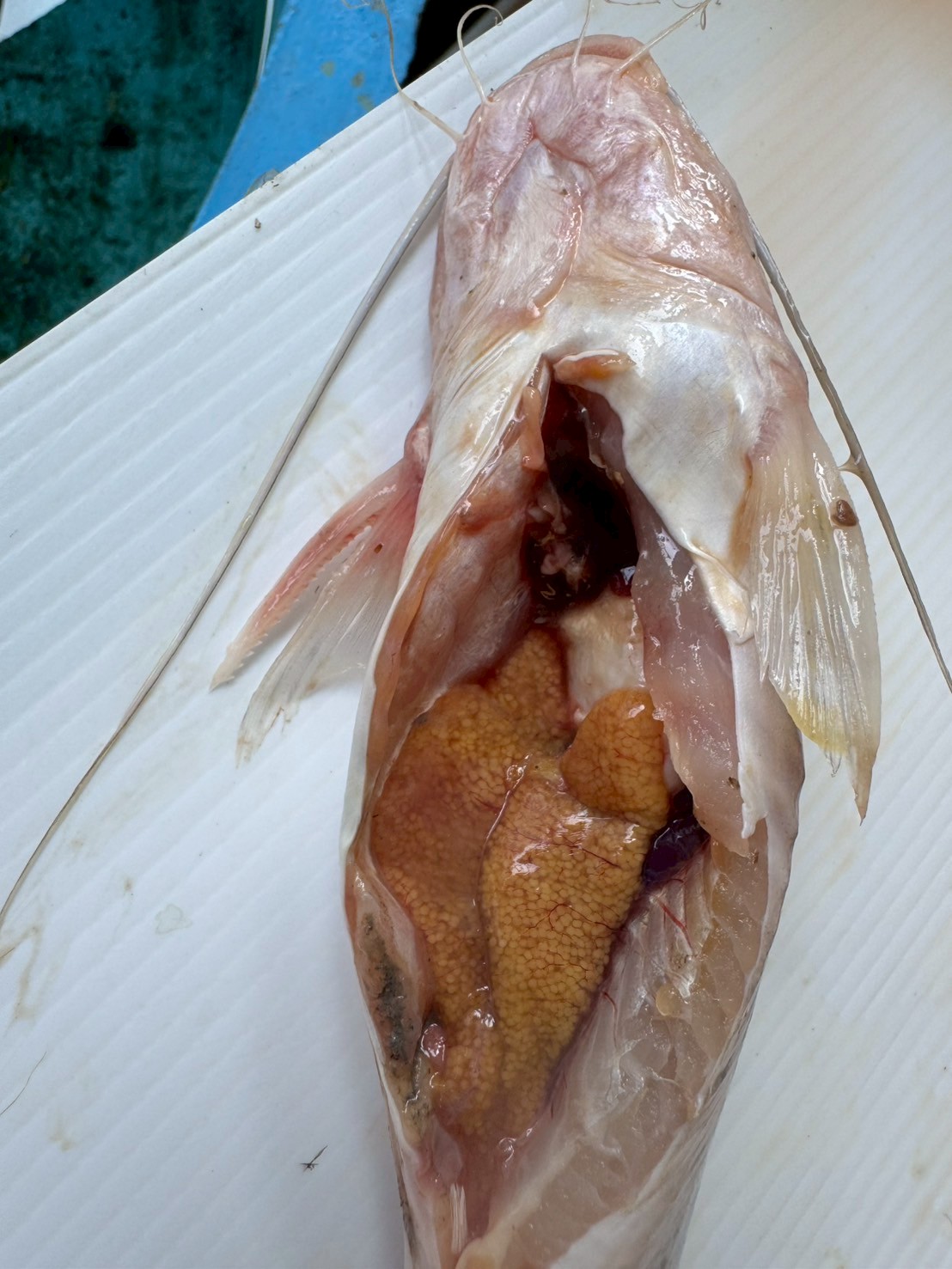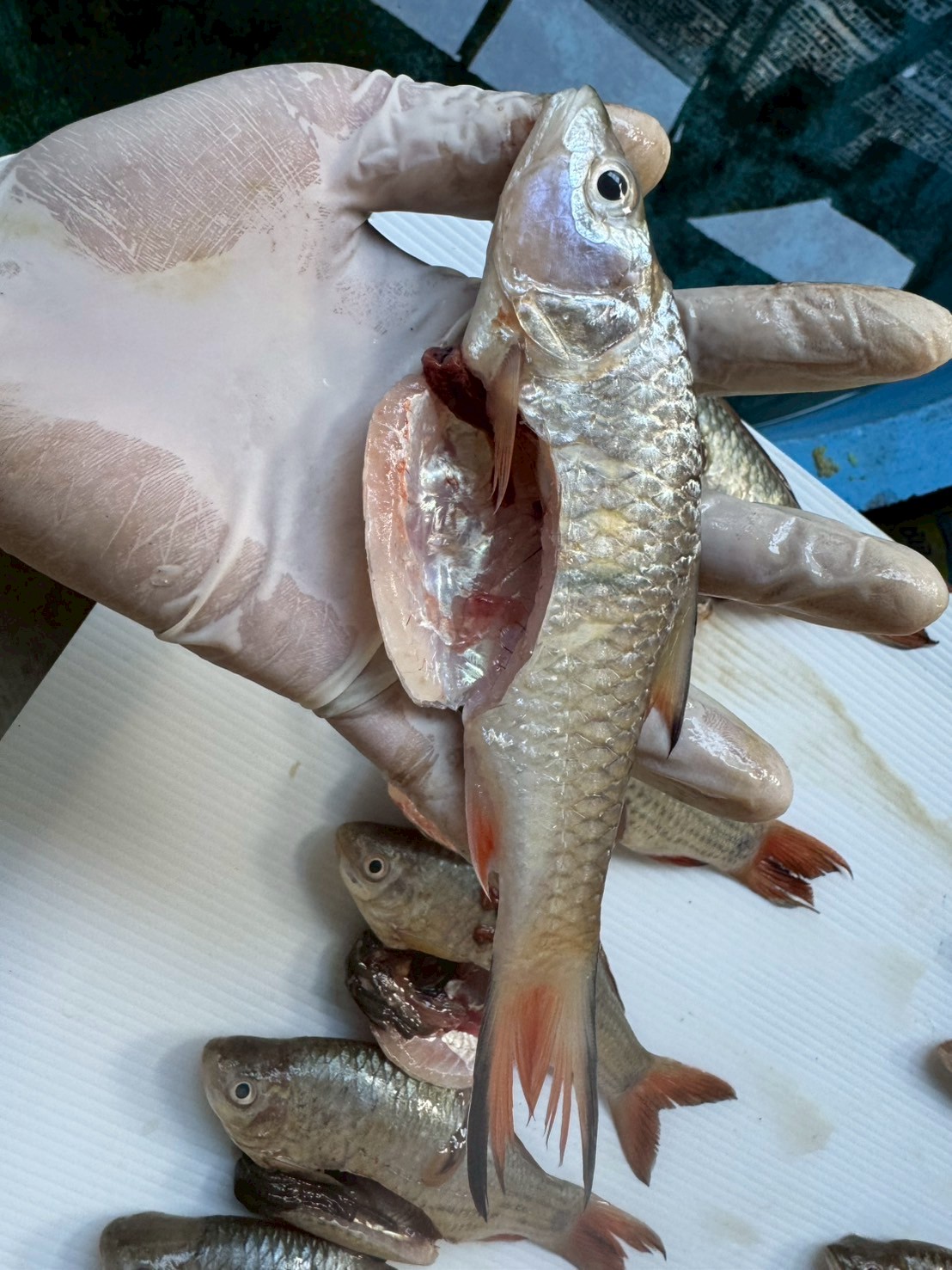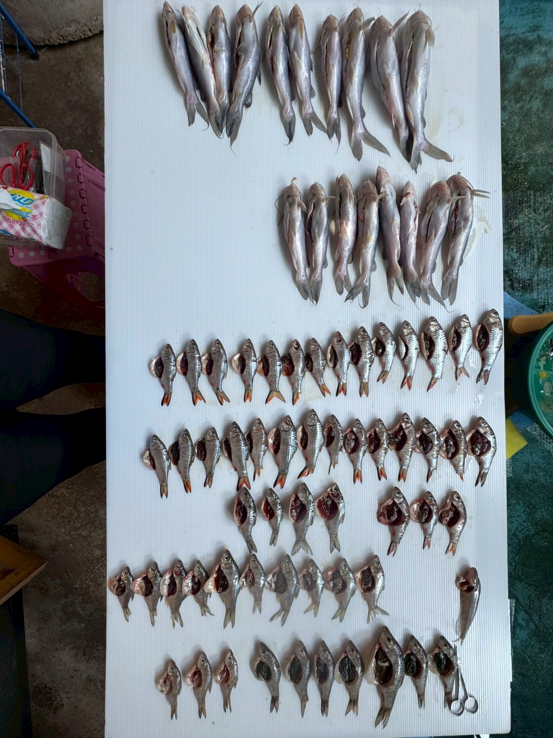 วันที่ 28 ตุลาคม 2568 ศูนย์วิจัยและพัฒนาประมงน้ำจืดเลย ปฏิบัติงานโครงการบริหารจัดการทรัพยากรประมง กิจกรรมจัดระเบียบประมง กิจกรรมย่อยการติดตามประเมินผลมาตรการการกำหนดพื้นที่และระยะเวลาฤดูสัตว์น้ำจืดมีไข่ หรือวางไข่ เลี้ยงตัวอ่อน (โครงการน้ำแดง) ประจำเดือนตุลาคม โดยทำการรวบรวมตัวอย่างปลาจากชาวประมง เพื่อศึกษาข้อมูลระยะเจริญพันธุ์      (Maurity Stage) และค่าดัชนีความสมบูรณ์เพศในปลา (Gonadosomatic Index,GSI) ในเขตพื้นที่จังหวัดเลย