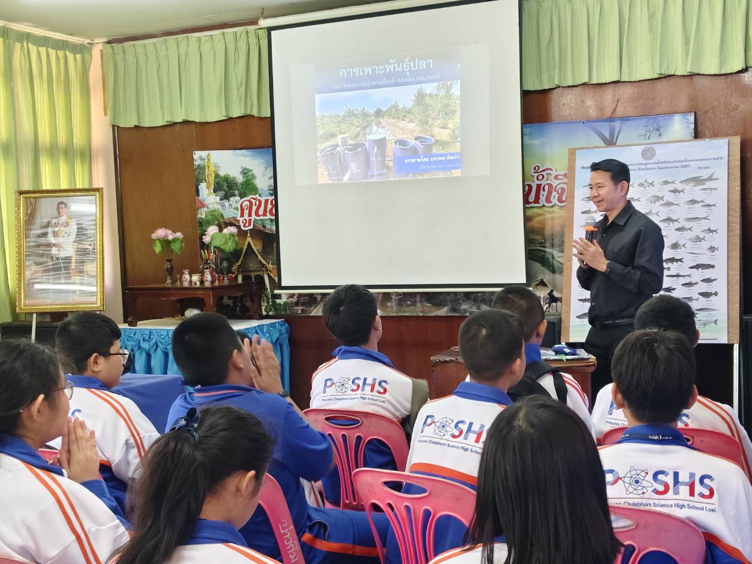วันที่ 21 พฤศจิกายน 2568 ศูนย์วิจัยและพัฒนาประมงน้ำจืดเลย ต้อนรับนักเรียนโรงเรียนวิทยาศาสตร์จุฬาภรณราชวิทยาลัย เข้าศึกษาดูงาน เพื่อต่อยอดพัฒนาโครงงานทางด้านนิเวศน์ในท้องถิ่น ณ ศูนย์วิจัยและพัฒนาประมงน้ำจืดเลย อำเภอเชียงคาน จังหวัดเลย