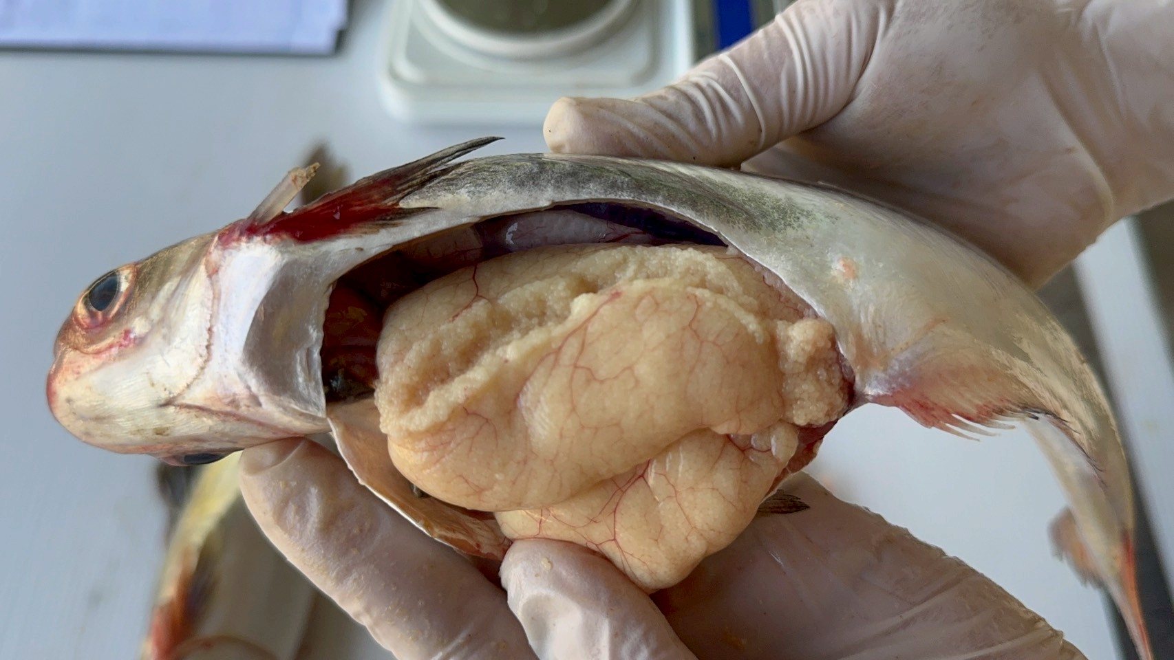 วันที่ 25 กุมภาพันธ์ 2569 ศูนย์วิจัยและพัฒนาประมงน้ำจืดเลย ปฏิบัติงานโครงการบริหารจัดการทรัพยากรประมง กิจกรรมจัดระเบียบประมง กิจกรรมย่อยการติดตามประเมินผลมาตรการการกำหนดพื้นที่และระยะเวลาฤดูสัตว์น้ำจืดมีไข่ หรือวางไข่ เลี้ยงตัวอ่อน (โครงการน้ำแดง) ประจำเดือนกุมภาพันธ์ โดยทำการรวบรวมตัวอย่างปลาจากชาวประมง เพื่อศึกษาข้อมูลระยะเจริญพันธุ์ (Maurity Stage) และค่าดัชนีความสมบูรณ์เพศในปลา (Gonadosomatic Index,GSI) ในเขตพื้นที่จังหวัดเลย