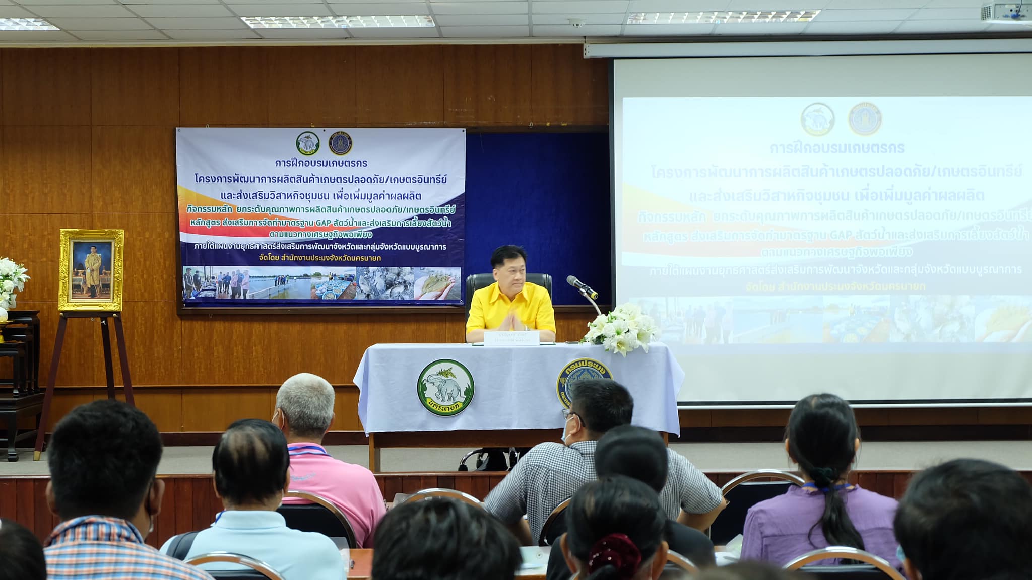 สำนักงานประมงจังหวัดนครนายก โดยนางสาวรัชนีบูลย์ ทิพย์เนตร เจ้าพนักงานประมงอาวุโส รักษาราชการแทน ประมงจังหวัดนครนายก พร้อมด้วยเจ้าหน้าที่สำนักงานประมงจังหวัดนครนายก จัดฝึกอบรมเกษตรกรผู้เพาะเลี้ยงสัตว์น้ำพร้อมมอบปัจจัยการผลิตให้แก่เกษตร จำนวน 45 ราย ตาม “โครงการพัฒนาการผลิตสินค้าเกษตรปลอดภัย/เกษตรอินทรีย์และส่งเสริมวิสาหกิจชุมชน เพื่อเพิ่มมูลค่าการผลิต” ภายใต้แผนงานยุทธศาสตร์ส่งเสริมการพัฒนาจังหวัดและกลุ่มจังหวัดแบบบูรณาการ ณ ห้องประชุมสถาบันเทคโนโลยีนิวเคลียร์แห่งชาติ (องค์การมหาชน) ตำบลทรายมูล อำเภอองครักษ์ จังหวัดนครนายก โดยมีรองศาสตราจารย์ ดร. ธวัชชัย อ่อนจันทร์ ผู้อำนวยการสถาบันเทคโนโลยีนิวเคลียร์แห่งชาติ (องค์การมหาชน) ให้การต้อนรับ นายบัญชา เชาวรินทร์ ผู้ว่าราชการจังหวัดนครนายก ประธานในพิธีเปิดการฝึกอบรม