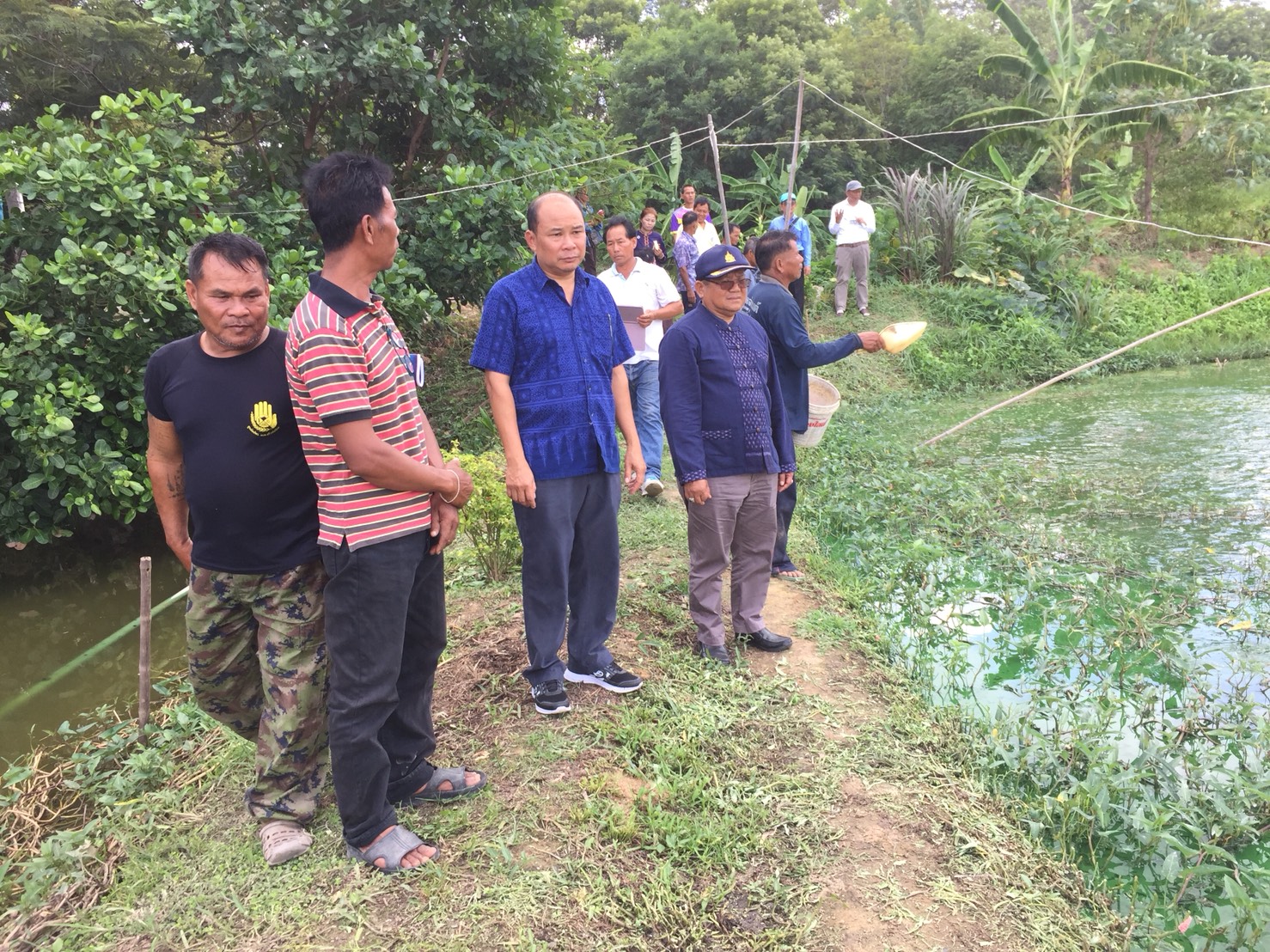 วันที่ 19 มิถุนายน 2561 นายสมบัติ  สิงห์สี ผู้อำนวยการศูนย์วิจัยและพัฒนาการเพาะเลี้ยงสัตว์น้ำจืดอำนาจเจริญ และนายณัฐวรรธน์ เตี๋ยสุวรรณ นักวิชาการประมงปฏิบัติการ ศูนย์วิจัยและพัฒนาการเพาะเลี้ยงสัตว์น้ำจืดอำนาจเจริญ พร้อมด้วย นายดรุณศักดิ์ ใจเกื้อ ประมงจังหวัดอำนาจเจริญ นายพรพิทักษ์    ตียาพันธ์ หัวหน้ากลุ่มบริหารจัดการด้านการประมง นางจิรนันทนิน ปะกิรณะ หัวหน้ากลุ่มพัฒนา และส่งเสริมอาชีพด้านการประมง สำนักงานประมงจังหวัดอำนาจเจริญ และนายราวี  แสงทอง ประมงอำเภอหัวตะพาน ออกติดตามตรวจเยี่ยม เกษตรกรผู้ร่วมโครงการระบบส่งเสริมเกษตรแบบแปลงใหญ่ (ปลาหมอไทย) เพื่อติดตามความก้าวหน้าโครงการ พร้อมทั้งรับฟังปัญหา อุปสรรค ให้คำแนะนำ และการแก้ไขปัญหาในการเลี้ยงปลาหมอไทยของกลุ่มเกษตรกรที่เข้าร่วมโครงการฯ ณ บ้านสร้างถ่อนอก ตำบลสร้างถ่อน้อย อำเภอหัวตะพาน จังหวัดอำนาจเจริญ