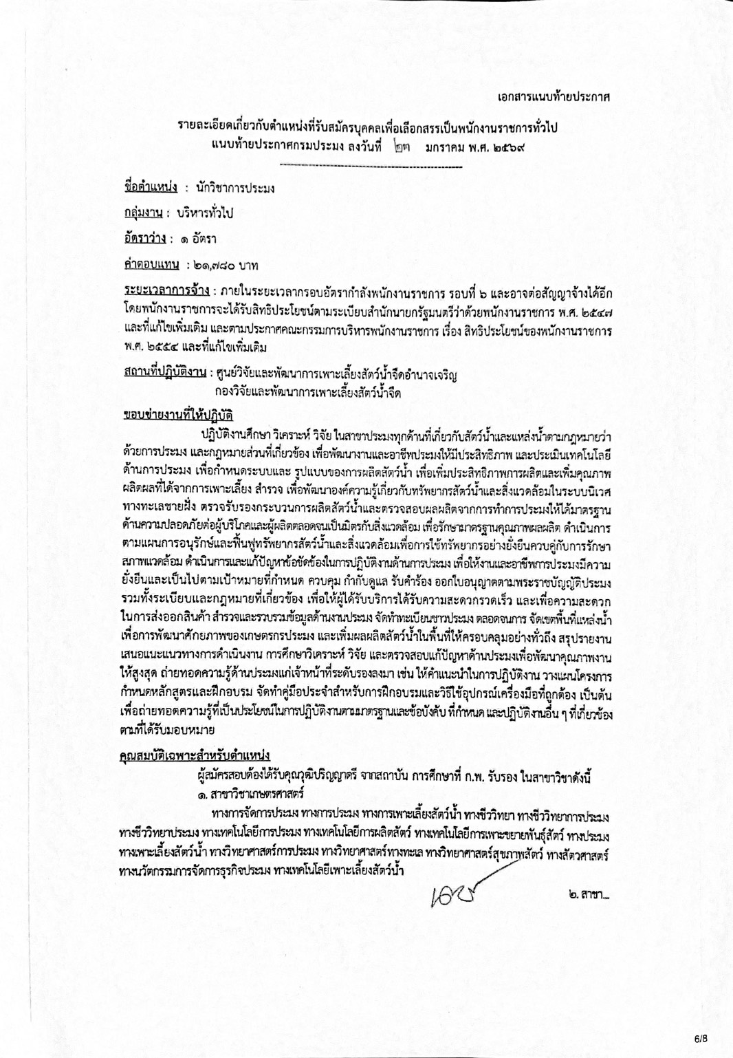 ประกาศ รับสมัครพนักงานราชการ ตำแหน่ง นักวิชาการประมง ระหว่างวันที่ 2-10 ก.พ. 69