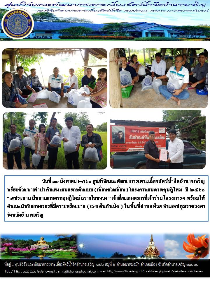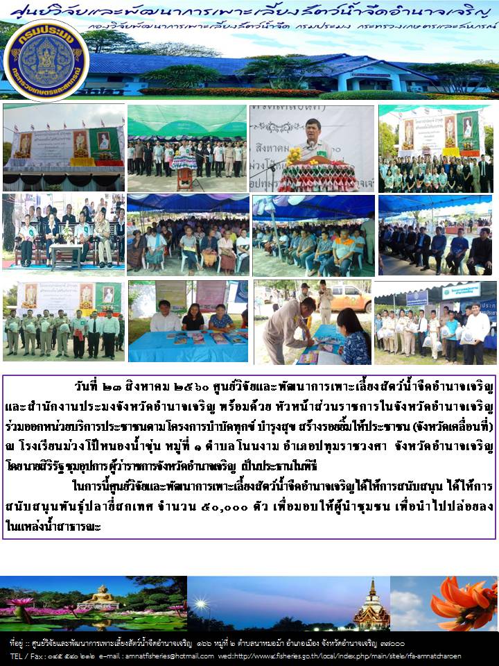 สงวนลิขสิทธิ์ พ.ศ.2569 ศูนย์วิจัยและพัฒนาการเพาะเลี้ยงสัตว์น้ำจืดอำนาจเจริญ