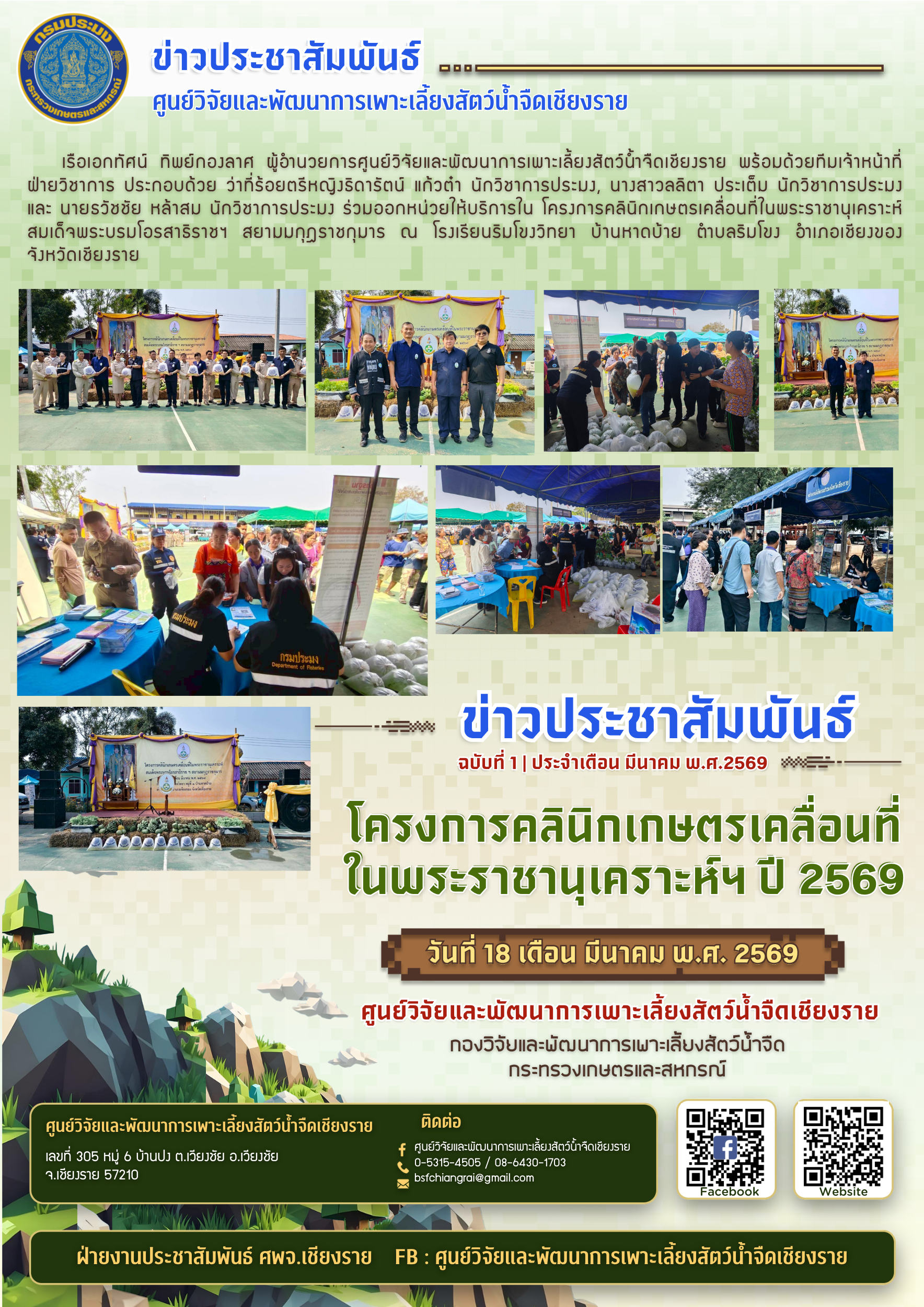 ศูนย์วิจัยและพัฒนาการเพาะเลี้ยงสัตว์น้ำจืดเชียงราย เลขที่ 50 เกษตรกลาง เขตจตุจักร กรุงเทพมหานคร 10900