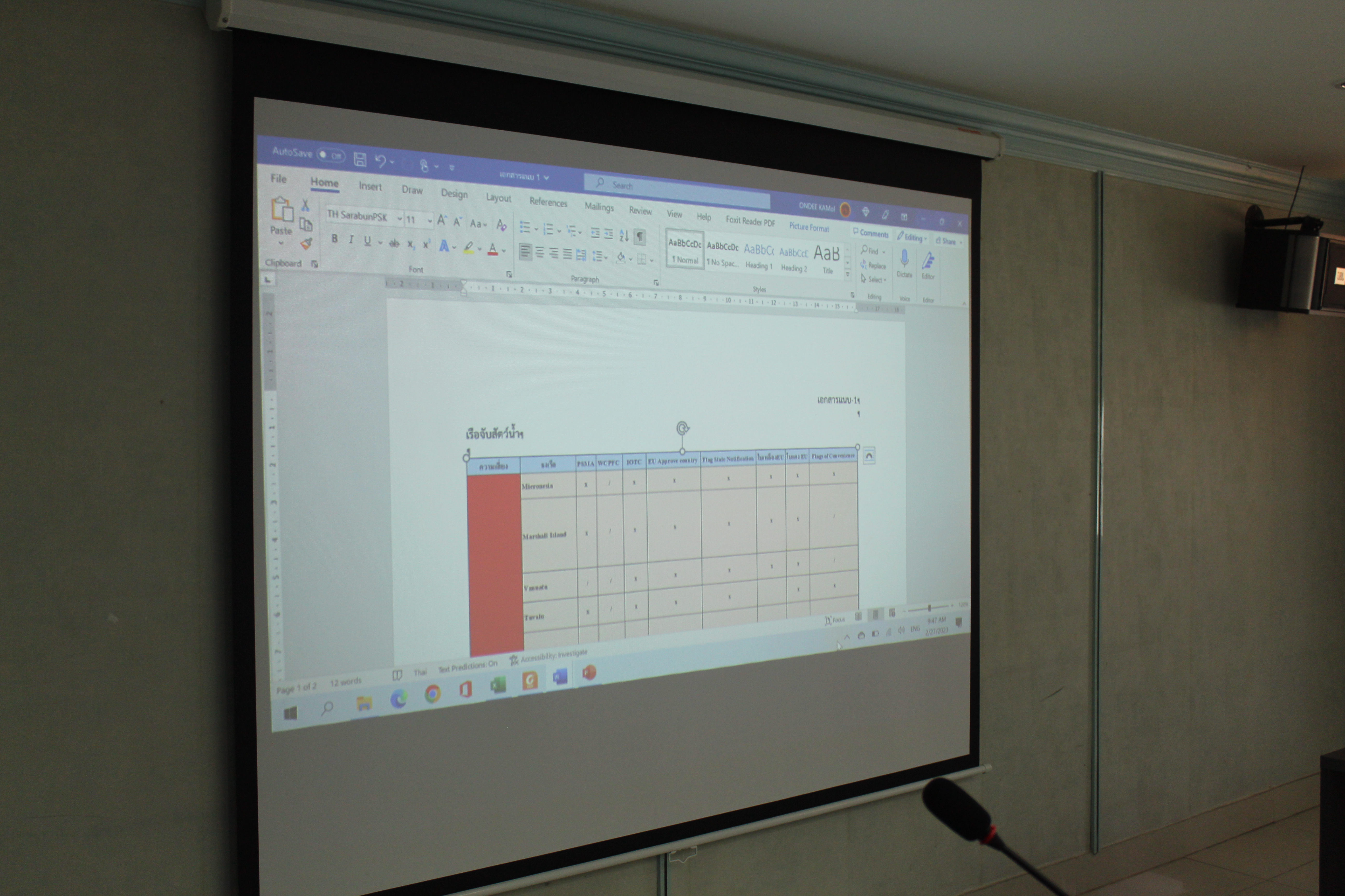นายอานันต์ อัลมาตร์ ผู้อำนวยการกองตรวจสอบเรือประมง สินค้าสัตว์น้ำ และปัจจัยการผลิต ร่วมพิจารณารายชื่อรัฐต้นกำเนิดและรัฐต้นทางบรรทุก การเพิ่มประสิทธิภาพ ความร่วมมือ การติดต่อสื่อสาร และแลกเปลี่ยนข้อมูลตามแนวทางและมาตรการ IUU - Free Thailand