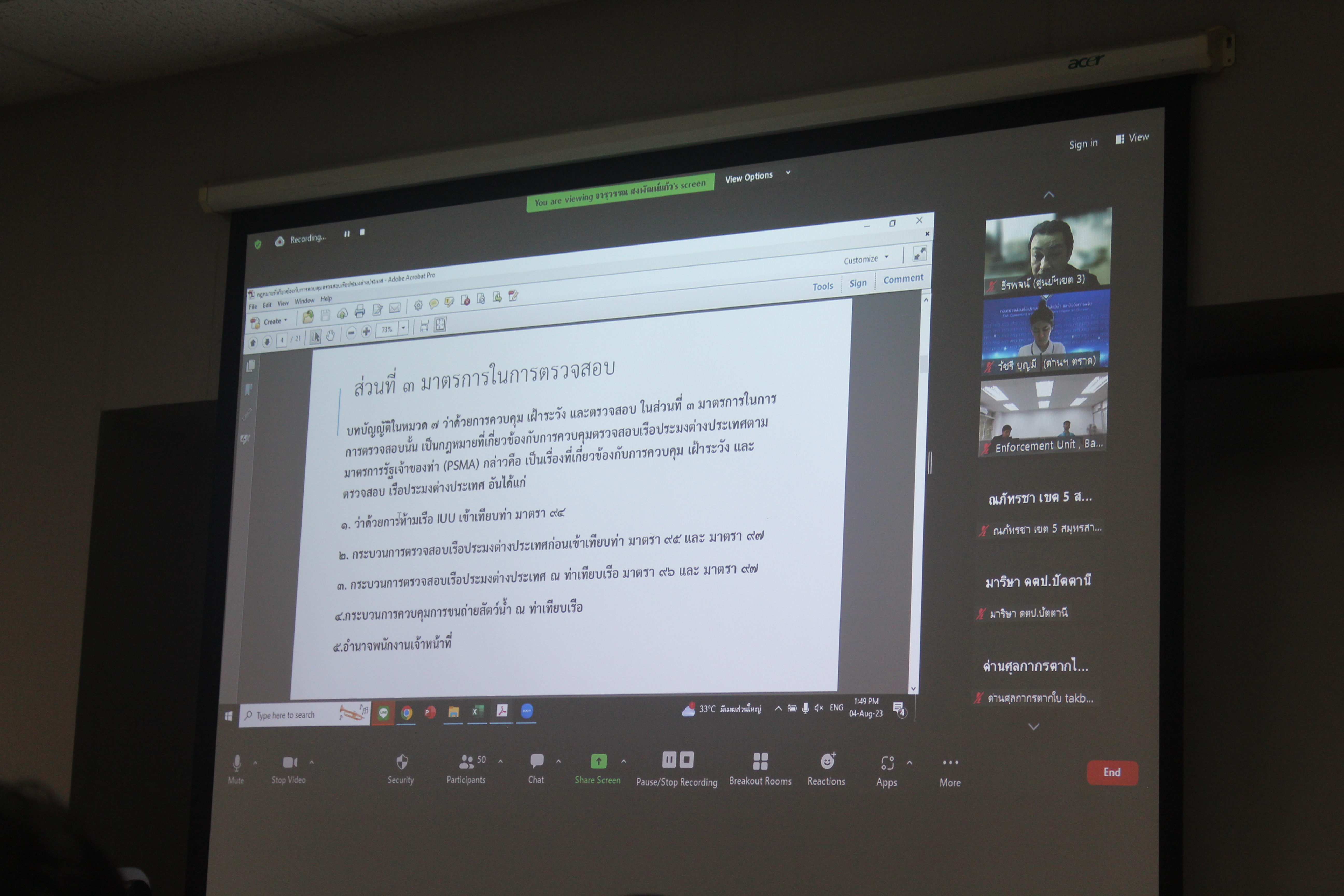 วันศุกร์ที่ 4 สิงหาคม 2566 นายอานันต์ อัลมาตร์ ผู้อำนวยการกองตรวจสอบเรือประมง สินค้าสัตว์น้ำ และปัจจัยการผลิต เข้าร่วมประชุมพิจารณาคู่มือการตรวจสอบเรือประมงต่างประเทศตามมาตรการรัฐเจ้าของท่า ที่มีการแก้ไขให้สอดคล้องกับสถานการณ์ปัจจุบัน และเป็นไปตามหลักการสากลว่าด้วยมาตรการรัฐเจ้าของท่าของ FAO ซึ่งประเทศไทยเป็นภาคีสมาชิกมาตั้งแต่ปี 2559 โดยในการประชุมเจ้าหน้าที่กรมประมงได้นำเสนอกระบวนการควบคุมตรวจสอบเรือประมงต่างประเทศ ซึ่งประกอบไปด้วย 3 ขั้นตอนหลัก ได้แก่ การตรวจสอบเรือก่อนเข้าเทียบท่า การตรวจสอบ ณ ท่าเทียบเรือ และการควบคุมการขนถ่ายสัตว์น้ำ พร้อมทั้งเปิดโอกาสให้ผู้เข้าร่วมประชุมสอบถามประเด็นปัญหาหรือข้อสงสัยต่างๆ เพื่อช่วยให้การดำเนินการเป็นไปด้วยความเรียบร้อยยิ่งขึ้น โดยมีท่านรองถาวร ทันใจ รองอธิบดี กรมประมง เป็นประธานในที่ประชุม ณ ห้องประชุมปากเปี่ยน ชั้น 5 อาคารจุฬาภรณ์ กรมประมง #กรมประมง