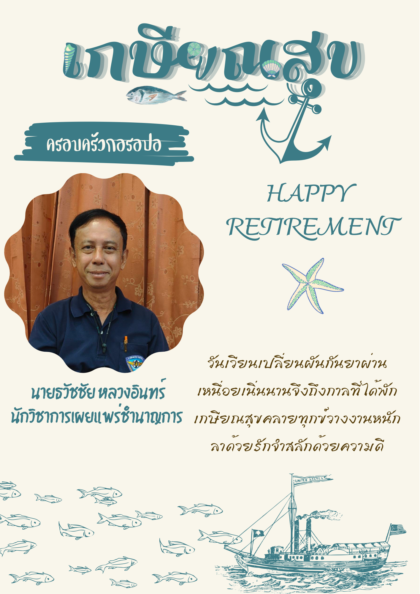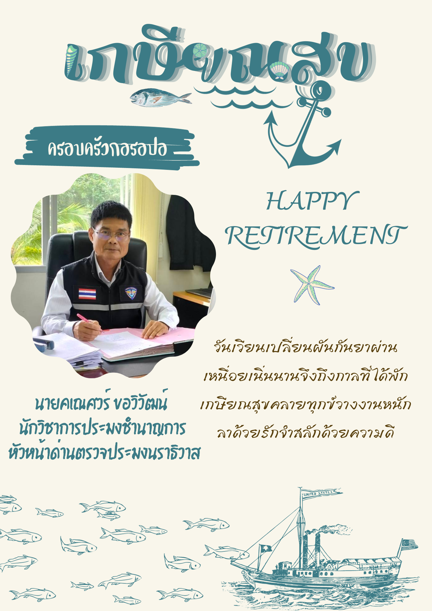 เกษียณแล้วจ้า "ผอ.นัน" และครอบครัว กอรอปอ ร่วมแสดงมุทิตาจิตแก่ผู้เกษียณอายุราชการ เจ้าหน้าที่ กองตรวจสอบเรือประมง สินค้าสัตว์น้ำ และปัจจัยการผลิต