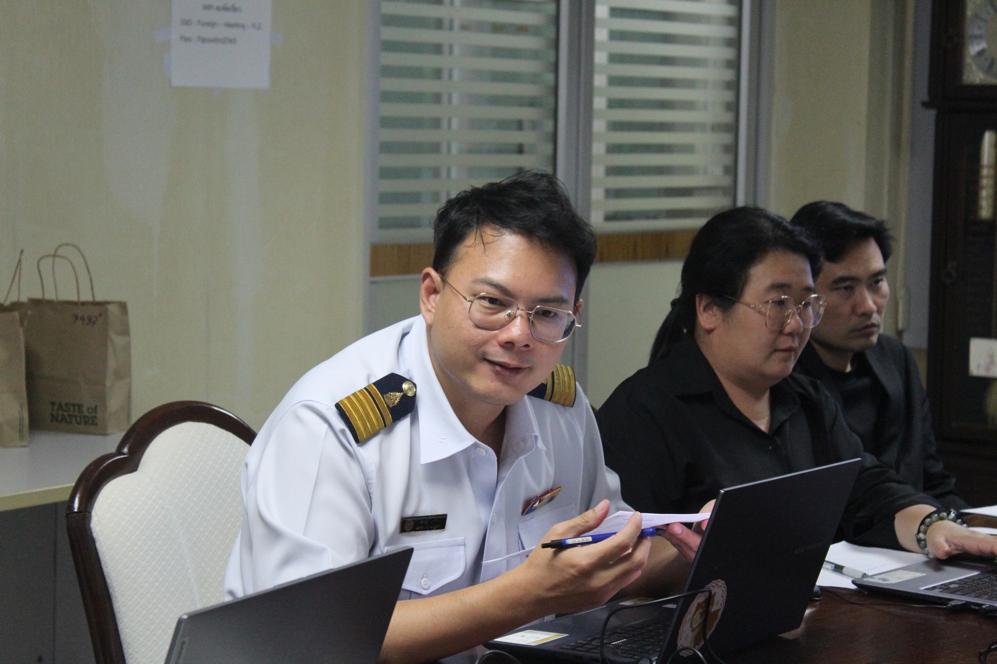 เมื่อวันจันทร์ที่ 24 พฤศจิกายน 2568 นายซุลกีฟลี ลติฟีปุตรา ผู้อำนวยการกองตรวจสอบเรือประมง สินค้าสัตว์น้ำ และปัจจัยการผลิต เป็นประธานในการประชุม นางสาวลัดดาวัลย์ ครองพงษ์ ผู้อำนวยการกองวิจัยและพัฒนาอาหารสัตว์น้ำ นางสาวจารี ผลชนะ หัวหน้ากลุ่มควบคุมวัตถุอันตรายและการค้าปัจจัยการผลิต และเจ้าหน้าที่ที่เกี่ยวข้อง ร่วมประชุมหารือแนวทางการดำเนินการในการนำเข้าอาหารสัตว์น้ำ.. ณ ห้องประชุมตะพัดเขียว ชั้น 2 อาคารกองประมงต่างประเทศ กรมประมง