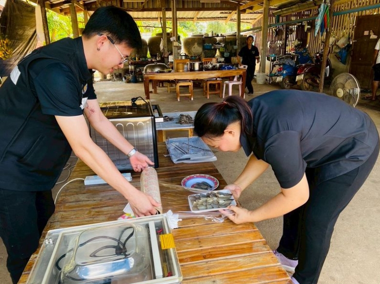 วันที่ 23 ธันวาคม 2568 นายวิชัย ทองประไพ ประมงจังหวัดสระแก้ว มอบหมายให้นางสมจิตร์ ฤทธิ์กลาง ประมงอำเภอเขาฉกรรจ์ พร้อมด้วยนายไชยวัฒน์ ปิจจะ เจ้าพนักงานประมงปฎิบัติงาน และนางสาววิริยา ชันษา นักวิชาการประมง ลงพื้นที่ดำเนินกิจกรรมตามแผนงาน จัดซื้อ จัดหา วัสดุอุปกรณ์ ปัจจัยการผลิต พร้อมทั้งถ่ายทอดองค์ความรู้ด้านการแปรรูปสัตว์น้ำ เมนูปลาแดดเดียวและปลาตะเพียนต้มเค็ม ภายใต้โครงการสร้างความเข้มแข็งกลุ่มการผลิตด้านประมง ประจำปีงบประมาณ พ.ศ. 2569