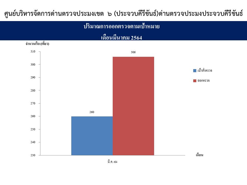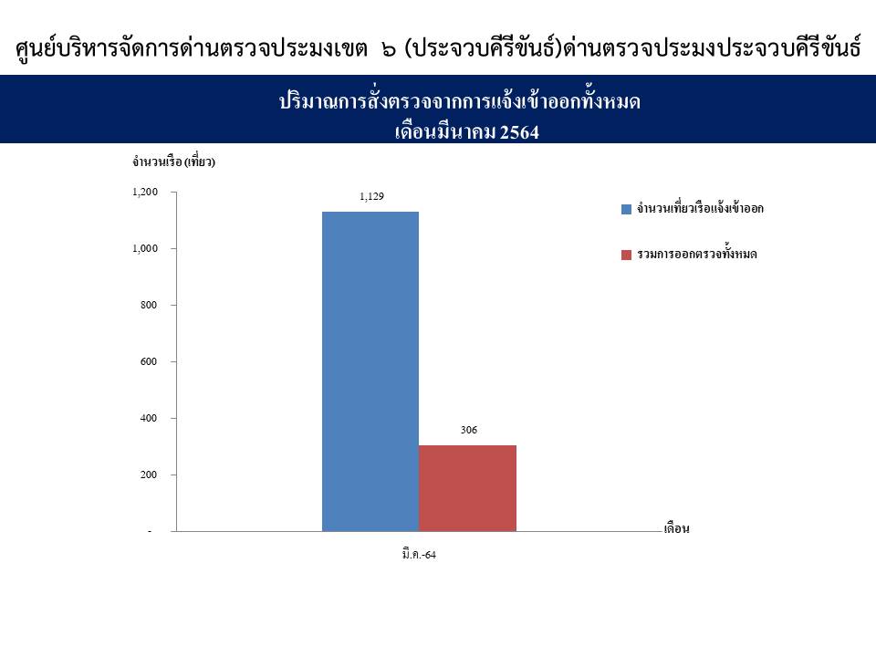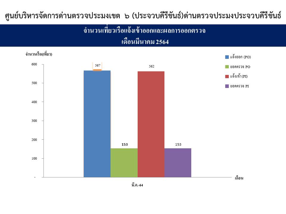 จำนวนเที่ยวเรือแจ้งเข้าออกและผลการออกตรวจ ด่านตรวจประมงเขต6 (ประจวบคีรีขันธ์)  อำเภอเมืองประจวบคีรีขันธ์ เดือน มีนาคม ปี64..คลิก