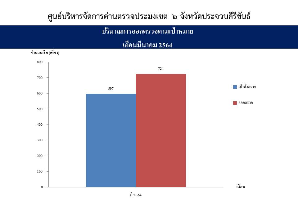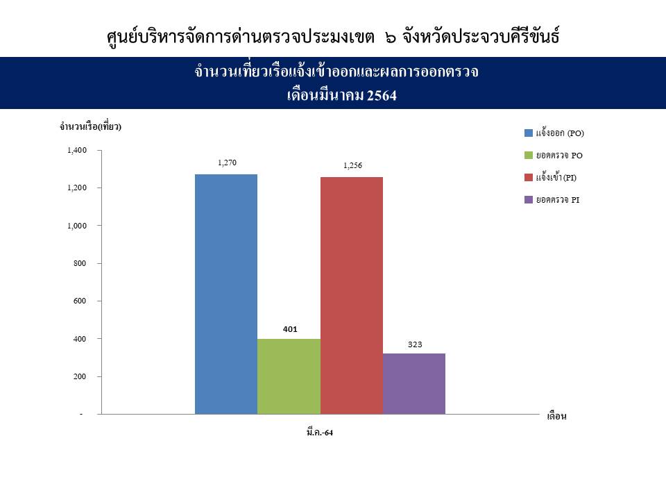 จำนวนเที่ยวเรือแจ้งเข้าออกและผลการออกตรวจทั้ง3ศูนย์ เขตพื้นที่จังหวัดประจวบคีรีขันธ์ ด่านตรวจประมงเขต6 (ประจวบคีรีขันธ์)  ประจำเดือน มีนาคม ปี64..คลิก