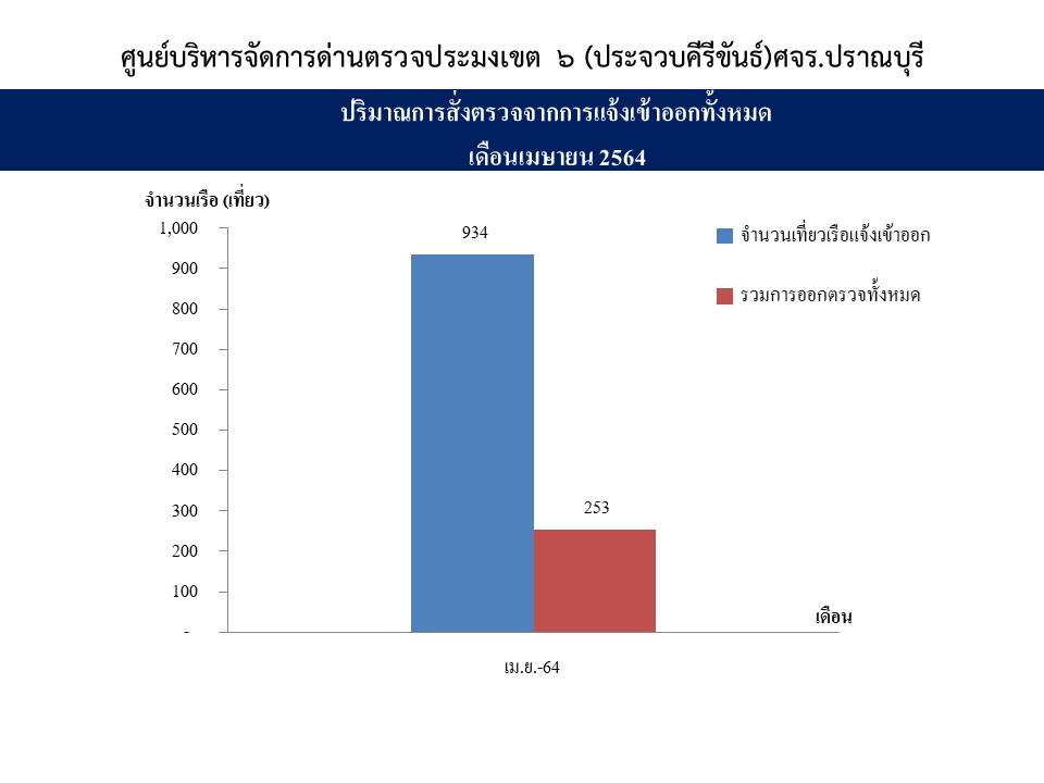 สรุปจำนวนเที่ยวเรือแจ้งเข้า-ออก และผลการออกตรวจ ประจำเดือน เมษายน 2564 ด่านตรวจประมงเขต6 (ประจวบคีรีขันธ์) อำเภอปราณบุรี