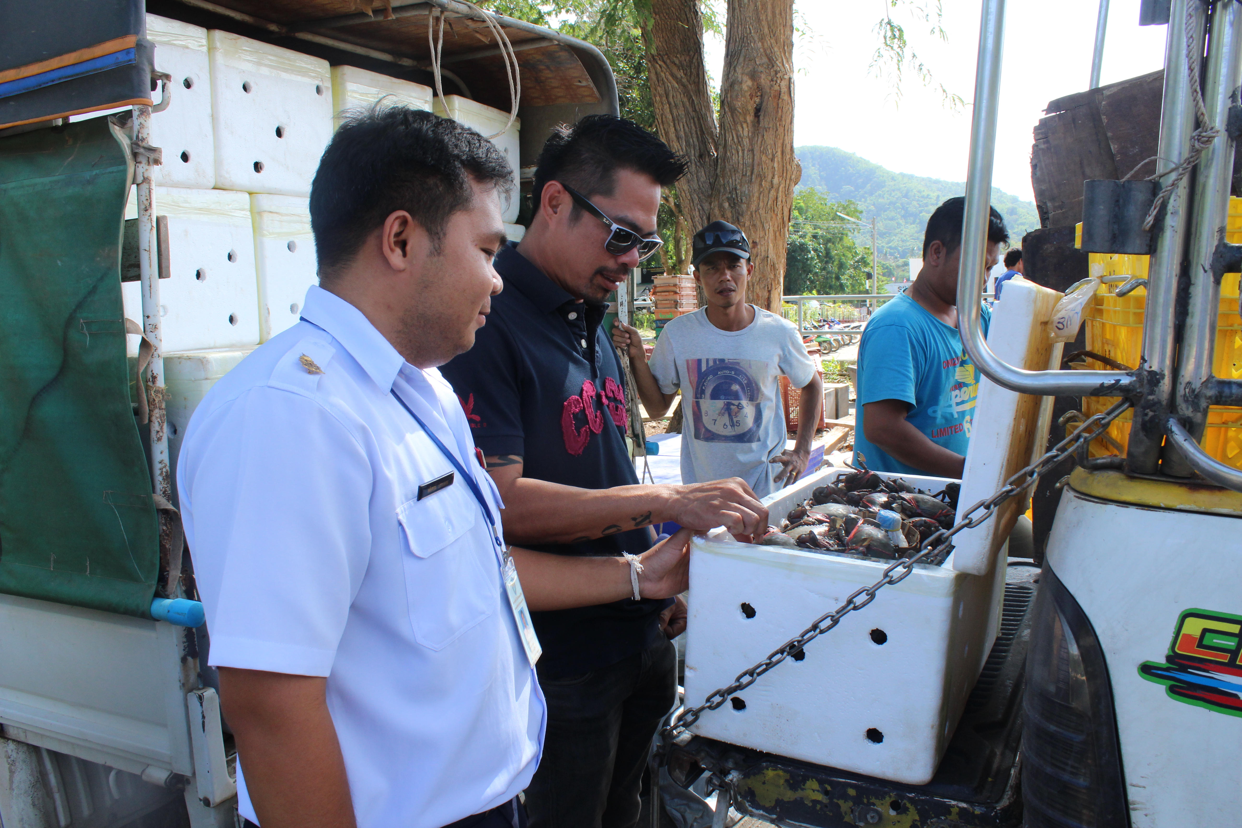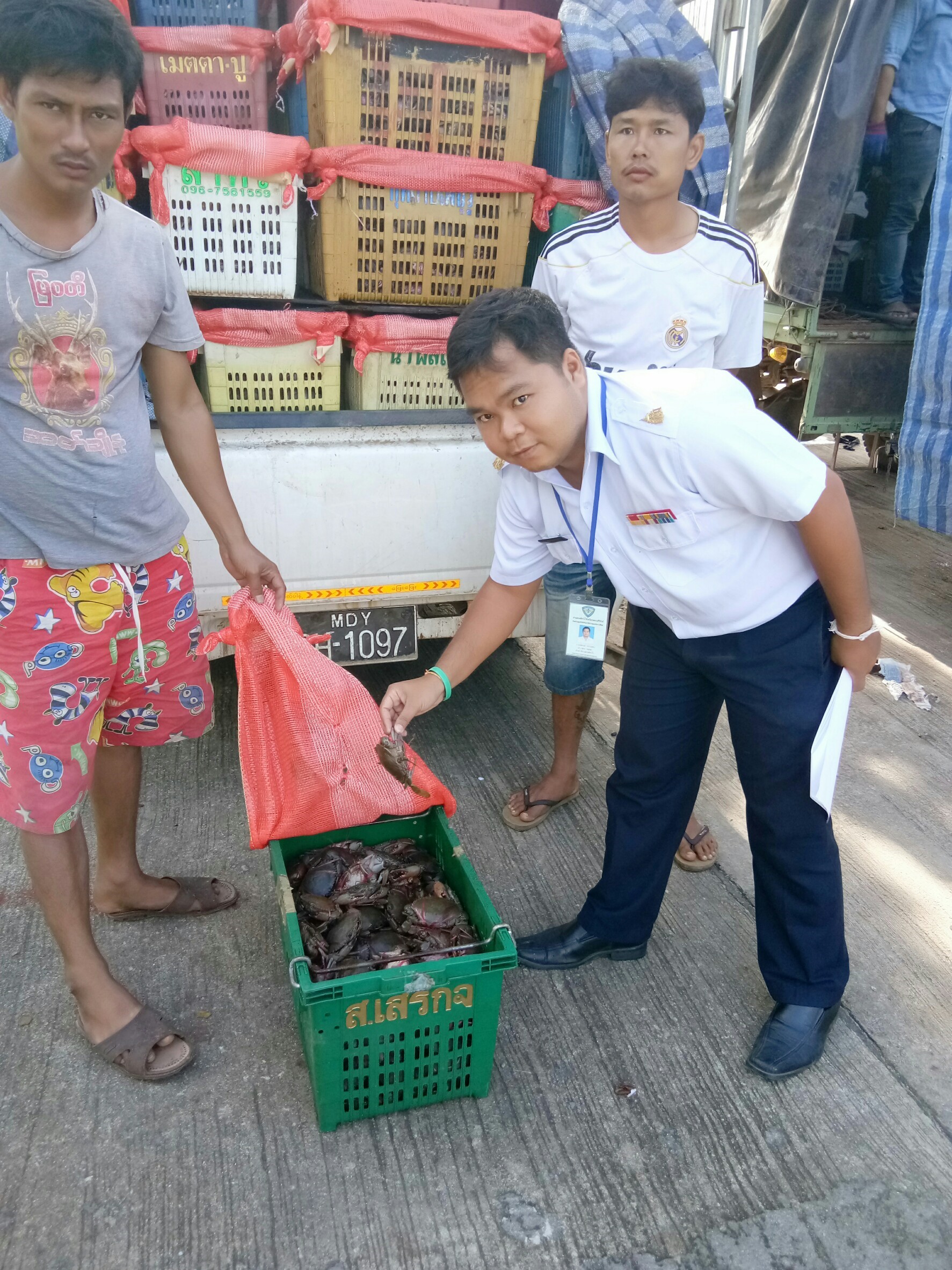 วันที่ 23 ตุลาคม 2560 เจ้าหน้าที่ด่านตรวจสัตว์น้ำจังหวัดประจวบคีรีขันธ์ สังกัดศูนย์บริหารจัดการ ด่านตรวจสัตว์น้ำ เขต 2 (กรุงเทพมหานคร) กองควบคุมการค้าสัตว์น้ำและปัจจัยการผลิต กรมประมง ได้ตรวจสอบสินค้าสัตว์น้ำนำเข้าจากประเทศเมียนมา ได้แก่ ปูทะเล กั้งตั๊กแตน และกุ้งมังกรมีชีวิต  ผลการตรวจสอบพบว่าถูกต้องตรงตามใบอนุญาตขอนำเข้าสัตว์น้ำและผลิตภัณฑ์สัตว์น้ำ จึงได้อนุญาตให้นำเข้าสัตว์น้ำผ่านระบบ FSW