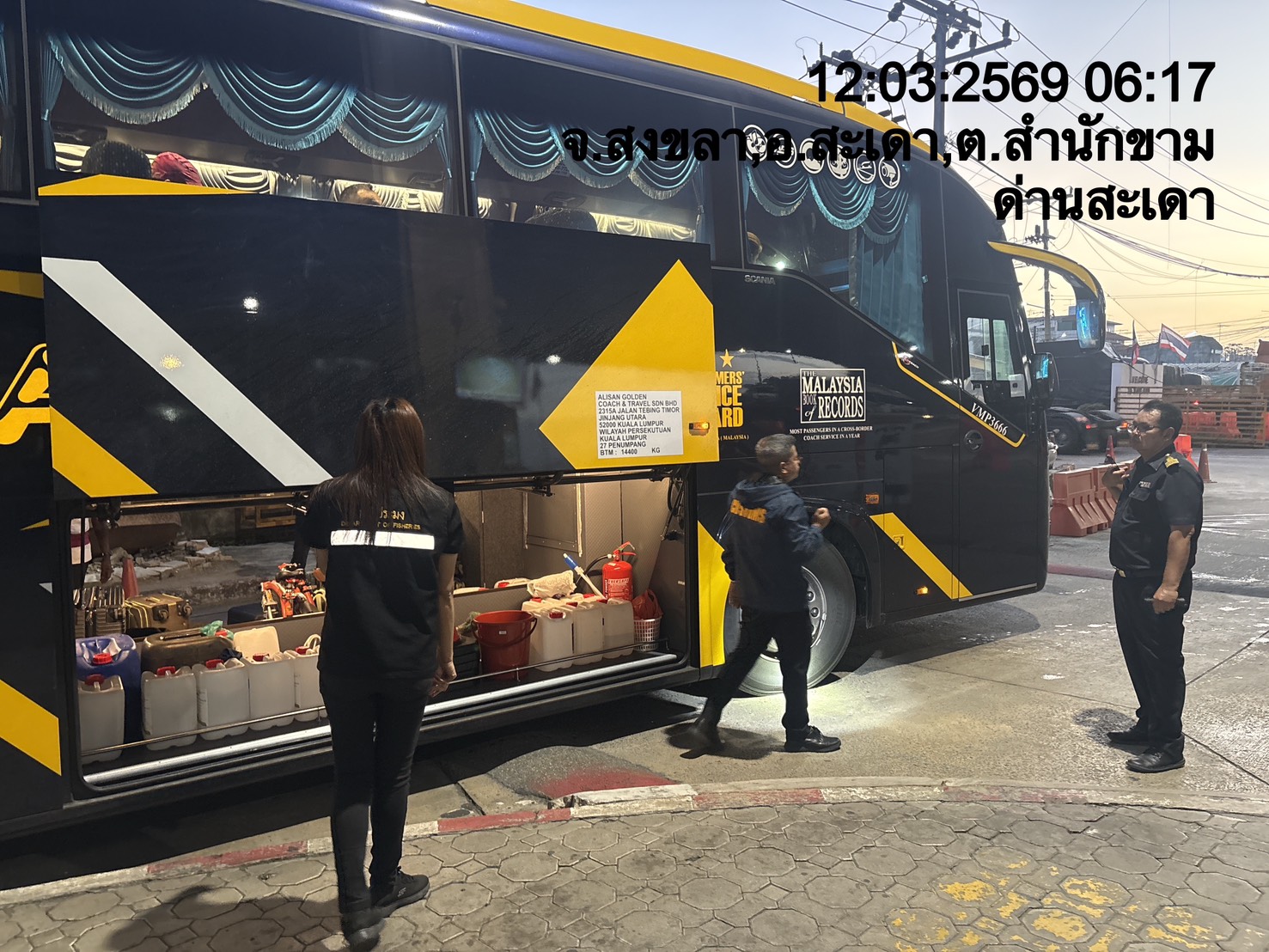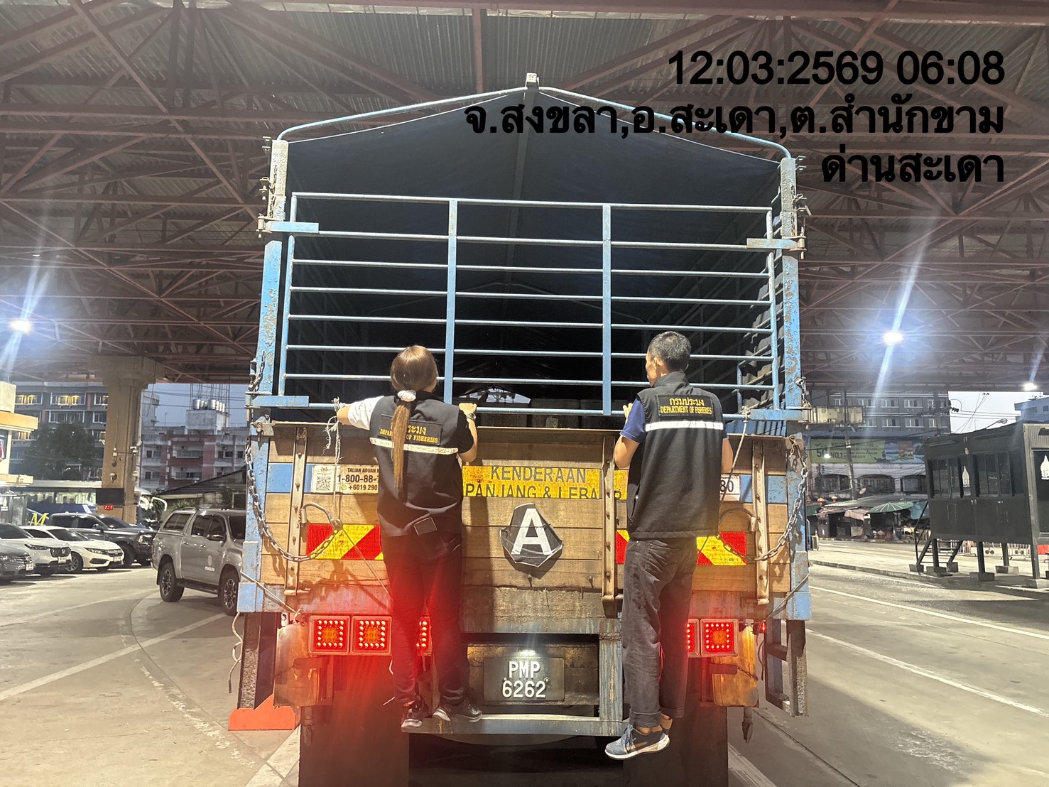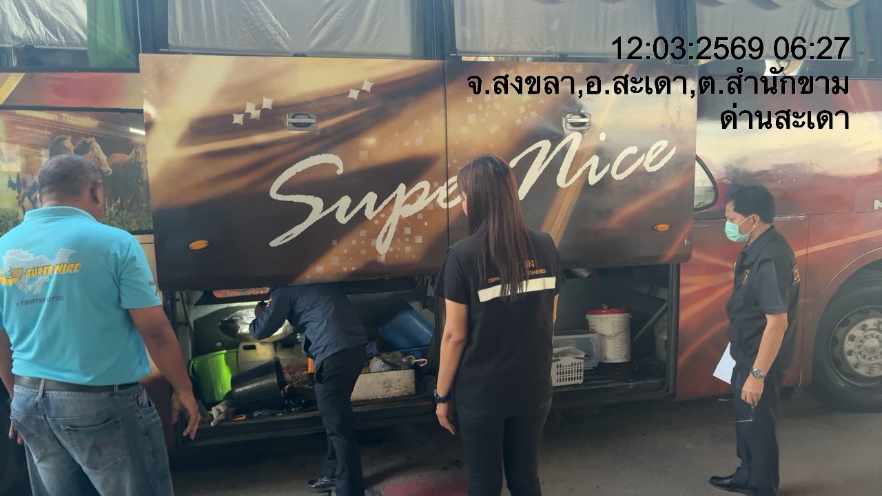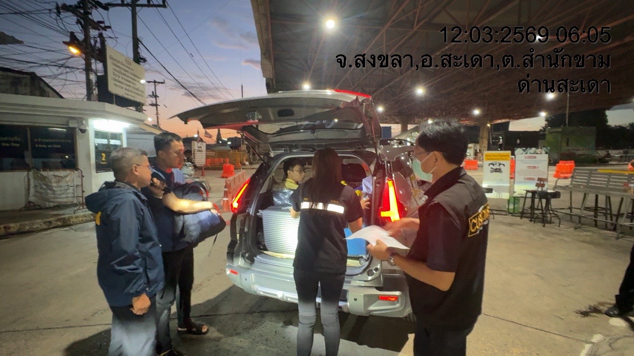 รายงานผลการปฏิบัติ งานตรวจสอบเฝ้าระวังลักลอบนำเข้าส่งออก วันที่ 12 มีนาคม 2569 ของสำนักงานตรวจประมงสะเดา (สะเดา-ปาดังเบซาร์-บ้านประกอบ)