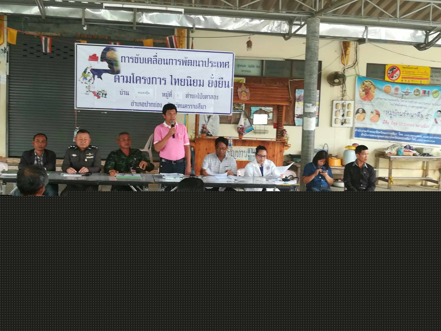 วันที่ 27 ก.พ. 2561 เวลา 09.00 น. นายพงษ์ศักดิ์ วงษ์ชัยเพ็ง ประมงอำเภอปากช่อง (หน.ชุดไทยนิยม ยั่งยืน  ตำบลโป่งตาลอง อำเภอปากช่อง) ร่วมกิจกรรมประชาสัมพันธ์รับทราบปัญหาจากชาวบ้าน หมู่ที่ 2 บ้านหนองคุ้ม ตำบลโป่งตาลอง อำเภอปากช่อง ณ ศาลาการเปรียญวัดบ้านหนองคุ้ม