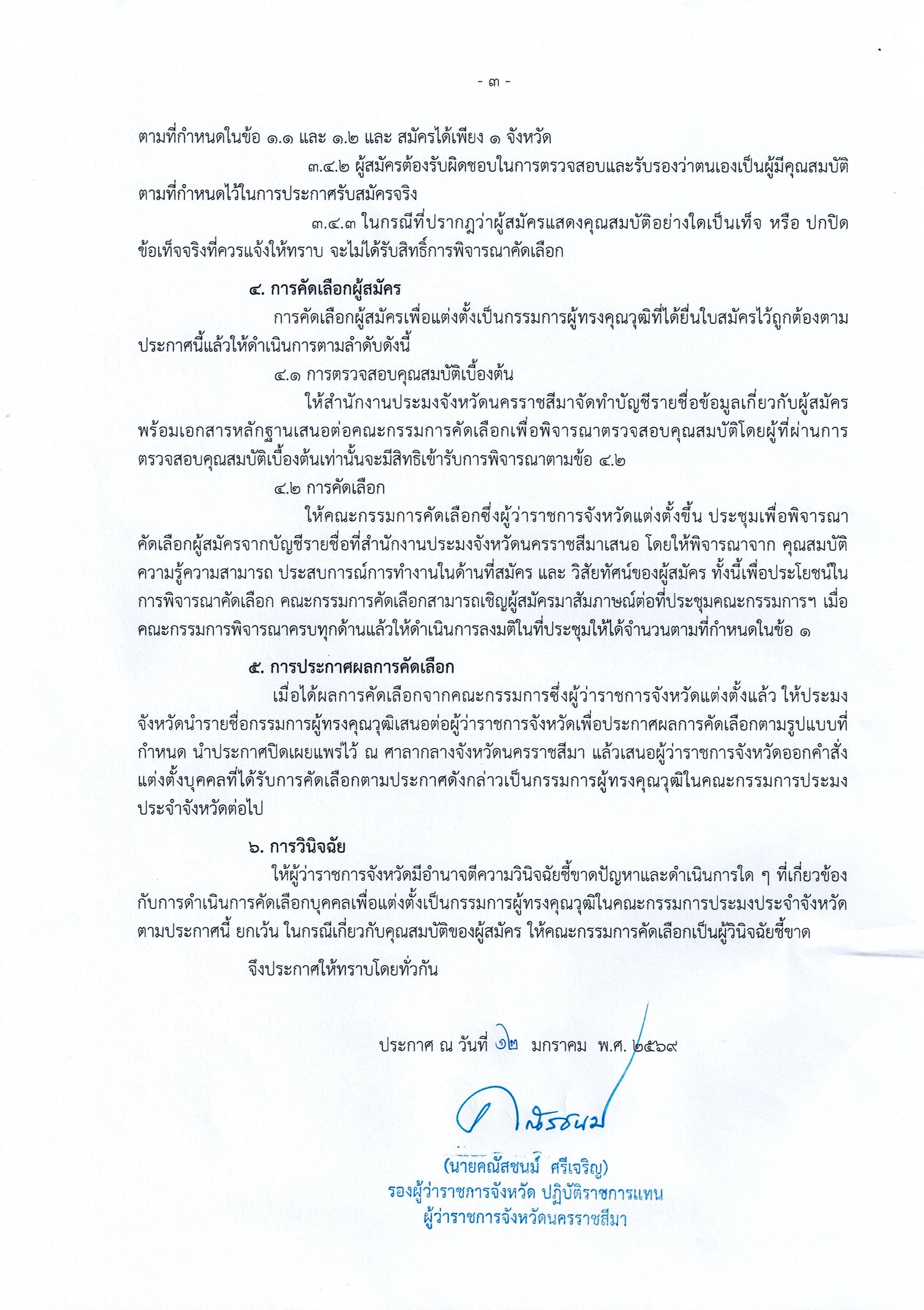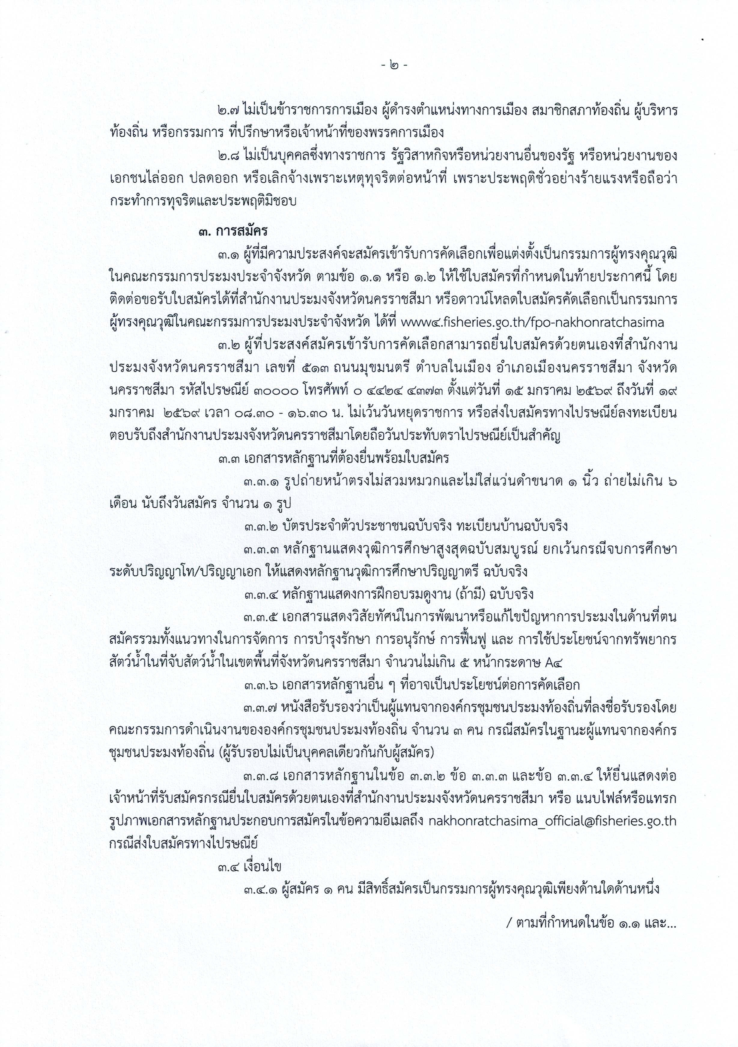 ประกาศจังหวัดนครราชสีมา เรื่อง การรับสมัครบุคคลเข้ารับการคัดเลือกเพื่อแต่งตั้งเป็นคณะกรรมการผู้ทรงคุณวุฒิ ในคณะกรรมการประมงประจำจังหวัดนครราชสีมา