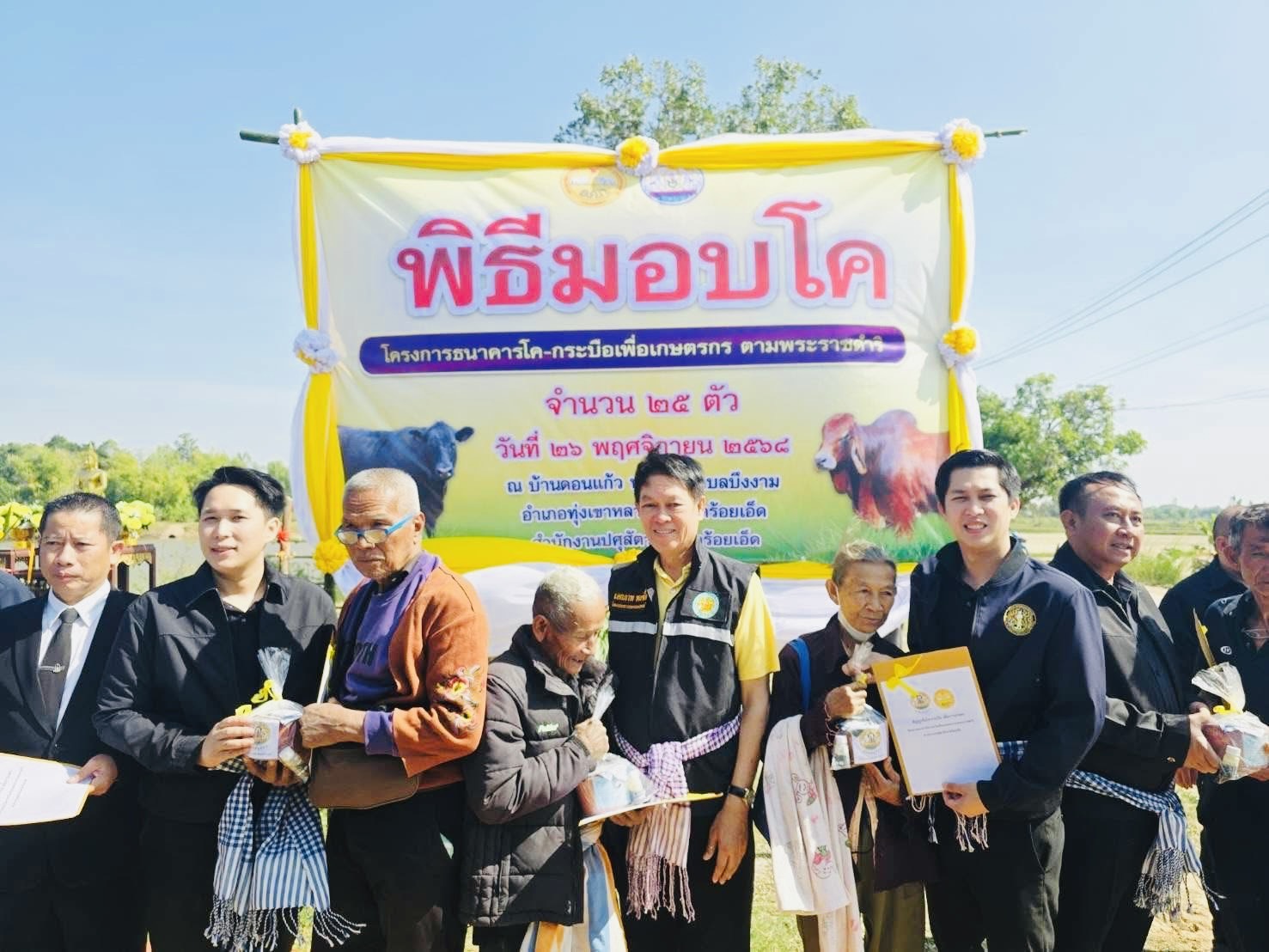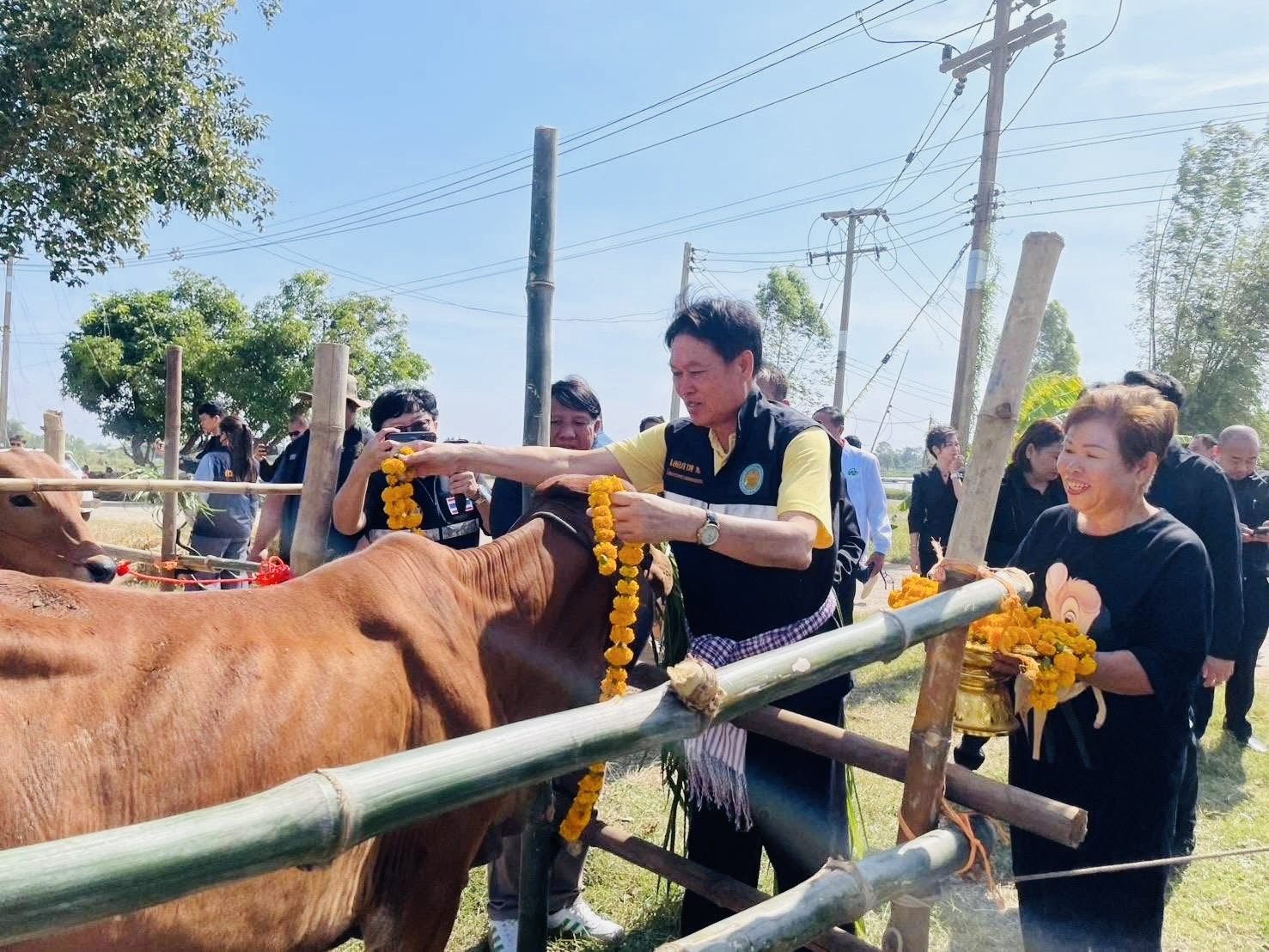 เป็นประธานในพิธี มีหน่วยงานสังกัดกระทรวงเกษตรและสหกรณ์เข้าร่วมพิธีฯ ณ บ้านดอนแก้ว หมู่ที่ 6 ตำบลบึงงาม อำเภอทุ่งเขาหลวง จังหวัดร้อยเอ็ด ภายในงาน มีนายอำนาจ มะธิปิไข ปศุสัตว์จังหวัดร้อยเอ็ด พร้อมด้วยนายอิทธิพัทธ์ จำรัสบุญหิรัญ ผู้อำนวยการส่วนส่งเสริมและพัฒนาการปศุสัตว์แทนปศุสัตว์เขต 4 กลุ่มส่งเสริมและพัฒนาการปศุสัตว์ สำนักงานปศุสัตว์อำเภอทุ่งเขาหลวง มอบโคทั้งหมดจำนวน 25 ตัว มอบเวชภัณฑ์จำนวน 25 ชุด