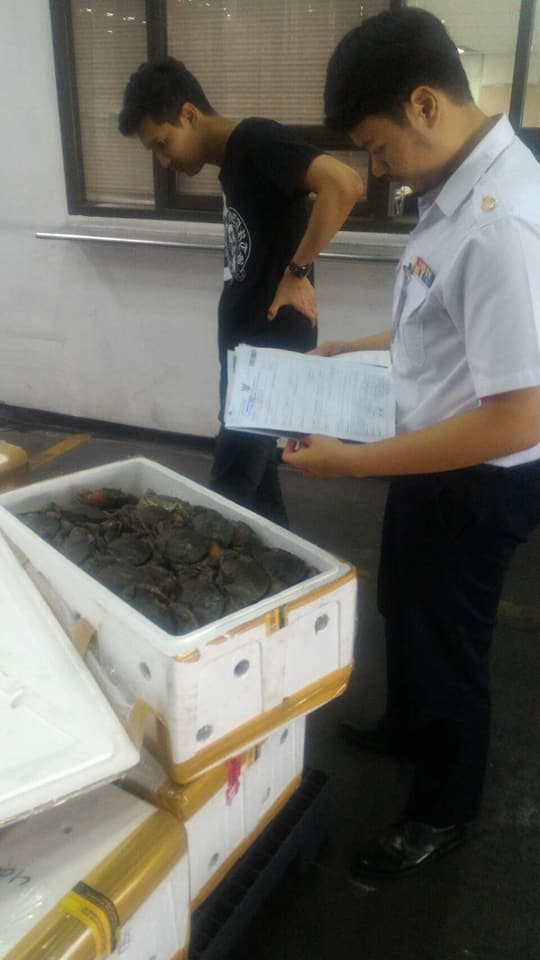 วันที่ 11 เมษายน 2561 เวลา 10.40 น. เจ้าหน้าที่ด่านตรวจสัตว์น้ำท่าอากาศยานดอนเมืองตรวจสินค้าสัตว์น้ำนำเข้า เป็นประเภทปูทะเลมีชีวิต จำนวน 5 กล่อง น้ำหนัก 135 กิโลกรัม นำเข้าจากประเทศอินโดนีเซีย เที่ยวบินที่ QZ154 ตรวจสอบ ถูกต้องตามใบอนุญาต จึงตรวจปล่อยอนุญาตให้นำเข้าต่อไป