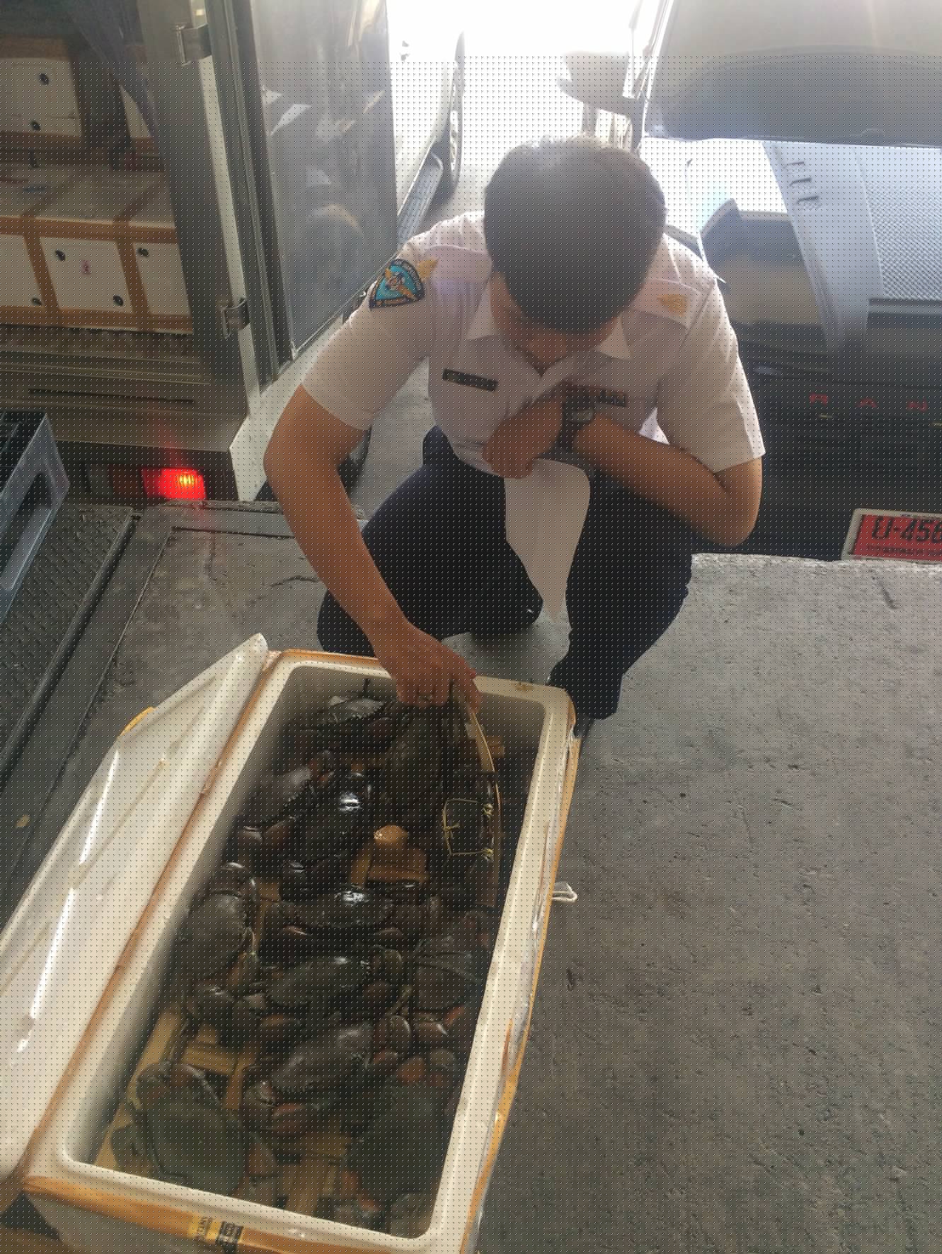 วันที่ 20 เมษายน 2561 เวลา 11.00 น. เจ้าหน้าที่ด่านตรวจสัตว์น้ำท่าอากาศยานดอนเมืองตรวจสอบสินค้าสัตว์น้ำนำเข้าประเภทปูทะเล มีชีวิต จำนวน 234 กิโลกรัม นำเข้าจากประเทศอินโดนีเซีย เที่ยวบินที่ QZ154 ผลการตรวจสอบถูกต้องตรงตามใบอนุญาตนำเข้า จึงได้ทำการตรวจปล่อยอนุญาตให้นำเข้าต่อไป
