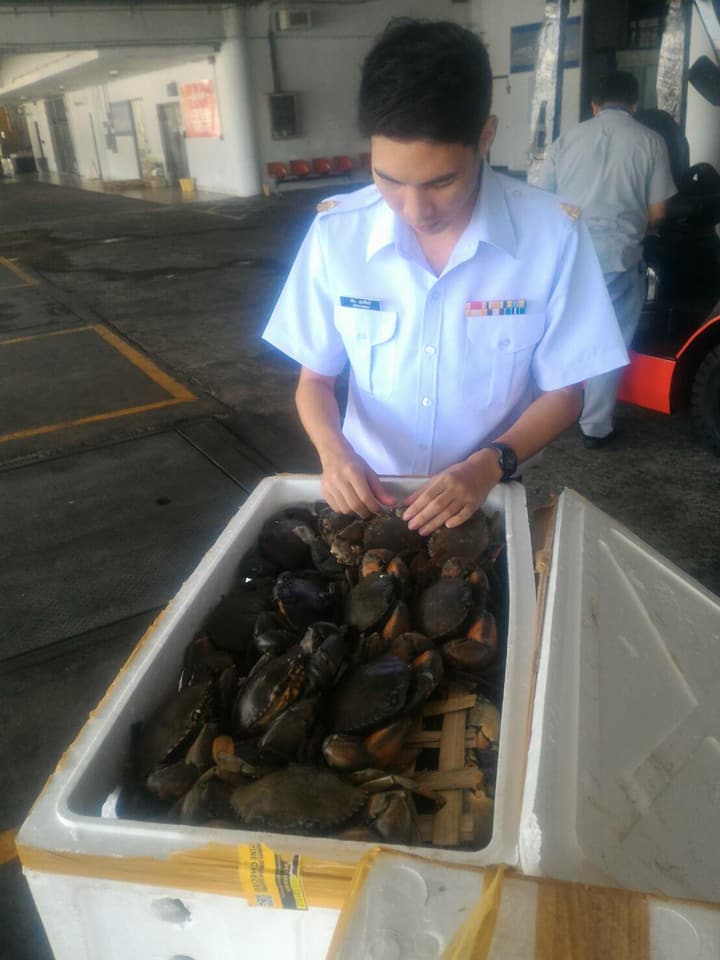 วันที่ 14 พฤษภาคม 2561 เวลา 09.50 น. เจ้าหน้าที่ด่านตรวจสัตว์น้ำท่าอากาศยานดอนเมืองตรวจสอบสินค้าสัตว์น้ำนำเข้า ประเภทปูทะเล มีชีวิต จำนวน 8 กล่อง น้ำหนัก 199 กิโลกรัม นำเข้าจากประเทศอินโดเนียเซีย เที่ยวบินที่ QZ/154 ถูกต้องตรงตามใบอนุญาต จึงตรวจปล่อยอนุญาตให้นำเข้าต่อไป